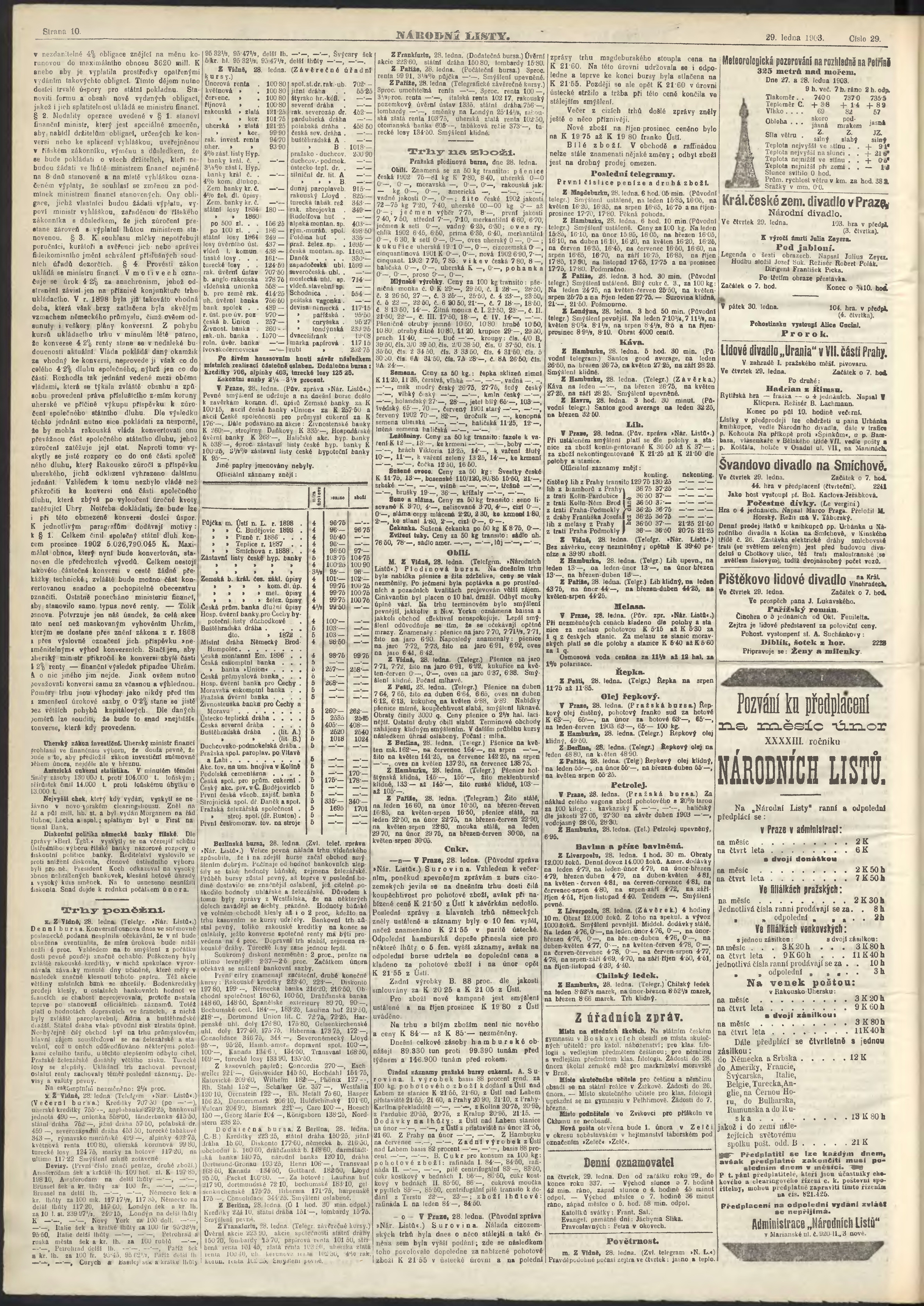 * Datum vydání výtisku: 29.1.1903 Číslo výtisku: 29 Poznámky k výtisku: ranní vydání;