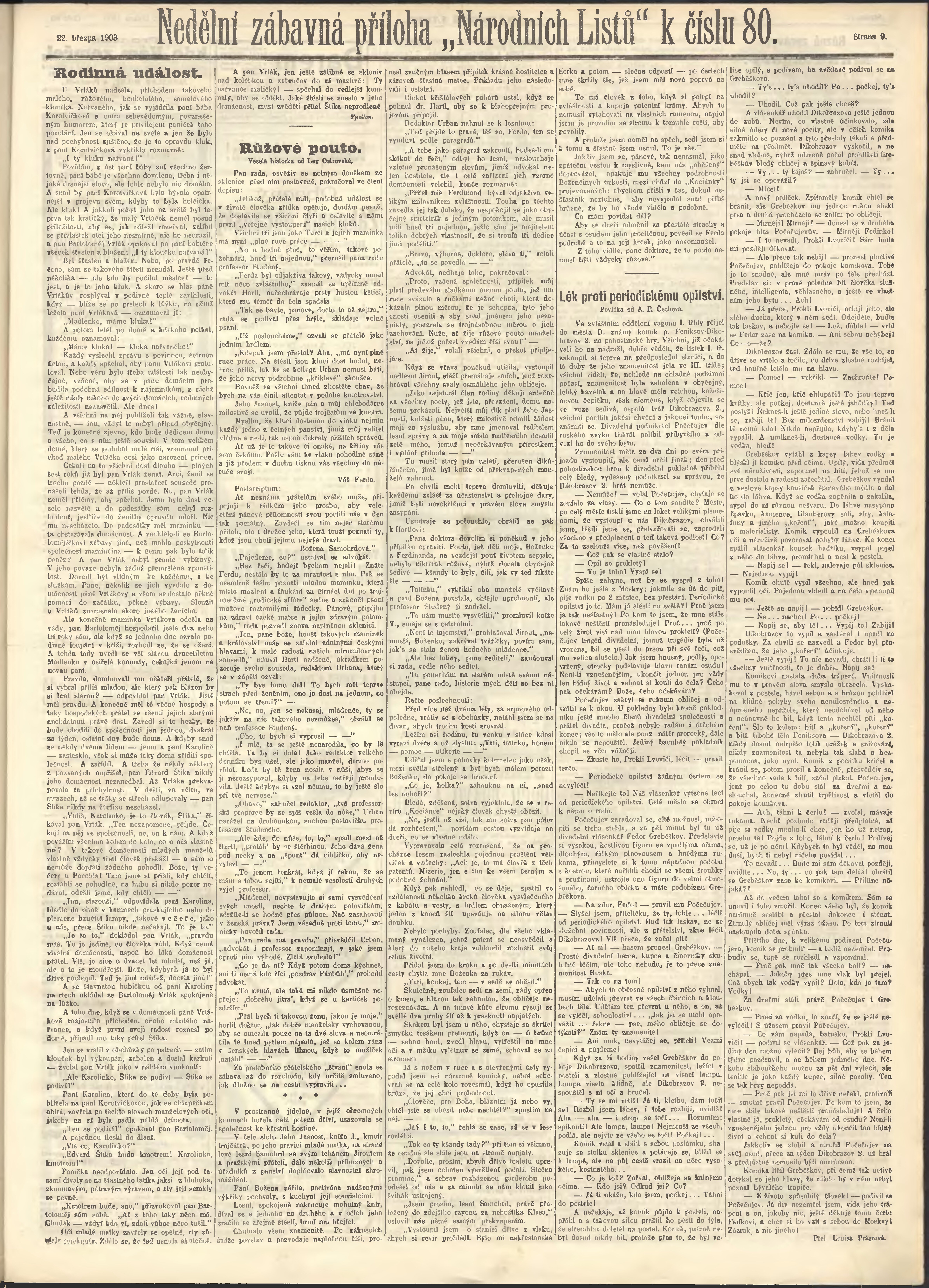 * Datum vydání výtisku: 22.3.1903 Číslo výtisku: 80 Poznámky k výtisku: ranní vydání;