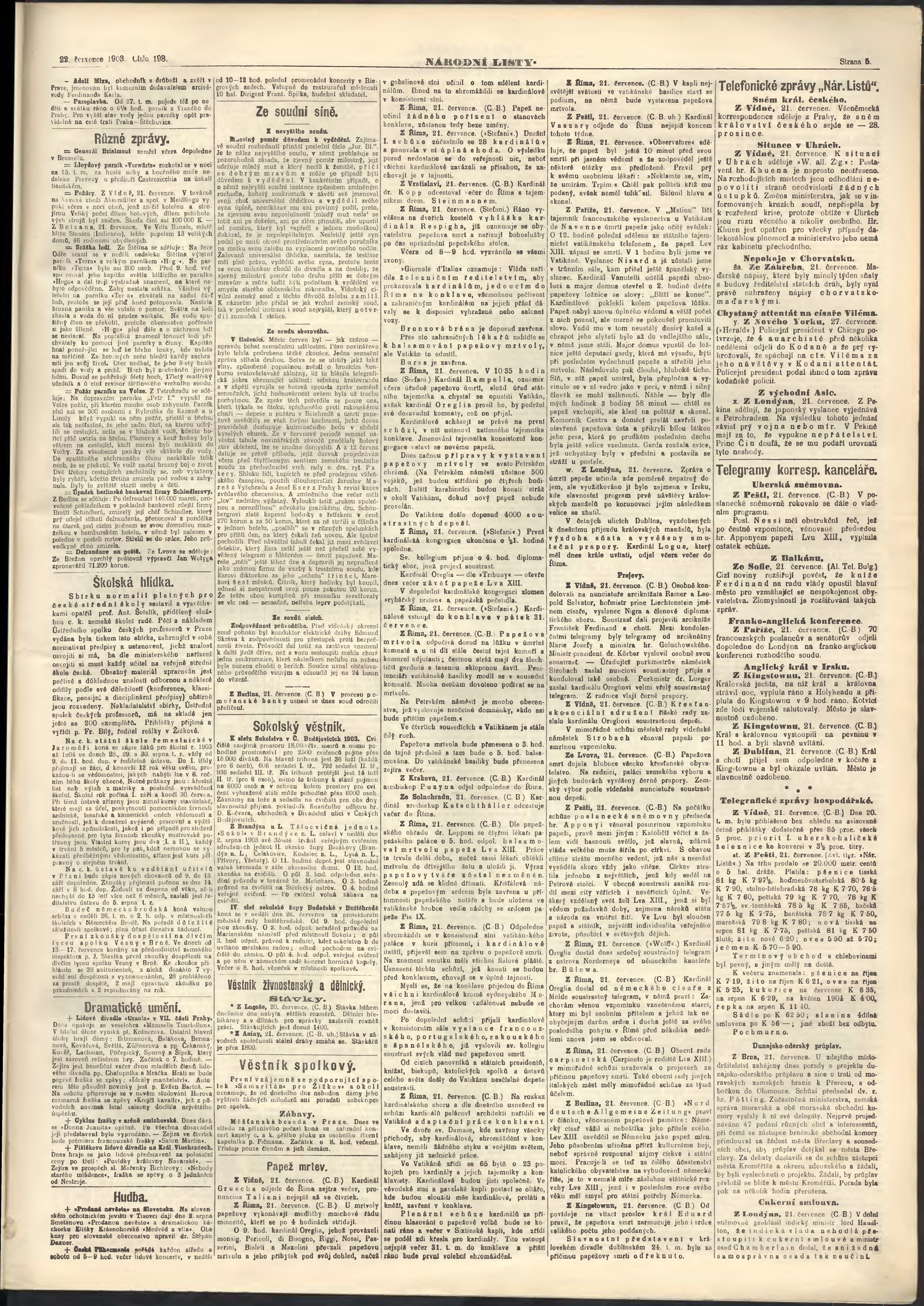 * Datum vydání výtisku: 22.7.1903 Číslo výtisku: 198 Poznámky k výtisku: ranní vydání;