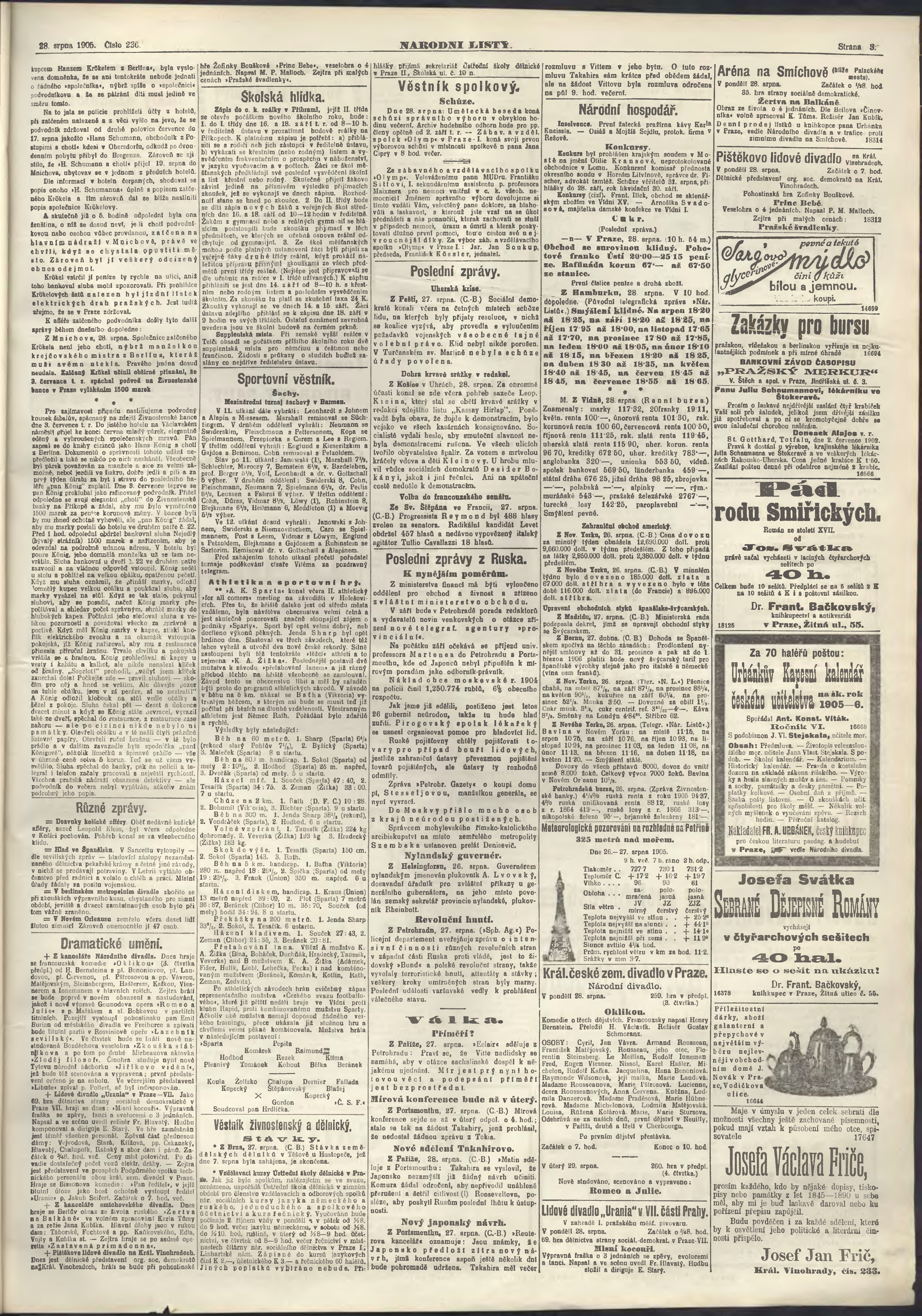 * Datum vydání výtisku: 28.8.1905 Číslo výtisku: 236 Poznámky k výtisku: ranní vydání;