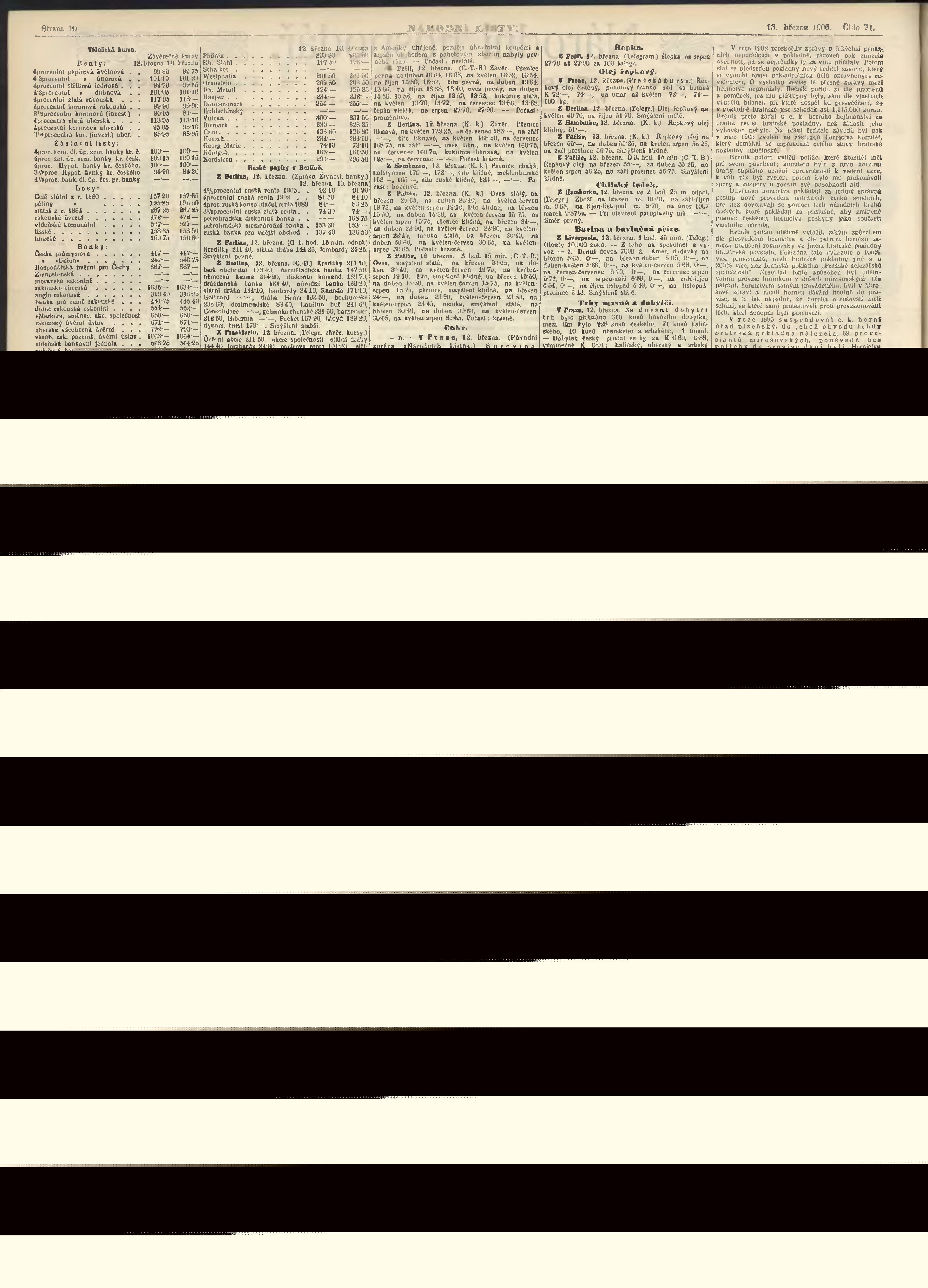 * Datum vydání výtisku: 13.3.1906 Číslo výtisku: 71 Poznámky k výtisku: ranní vydání;