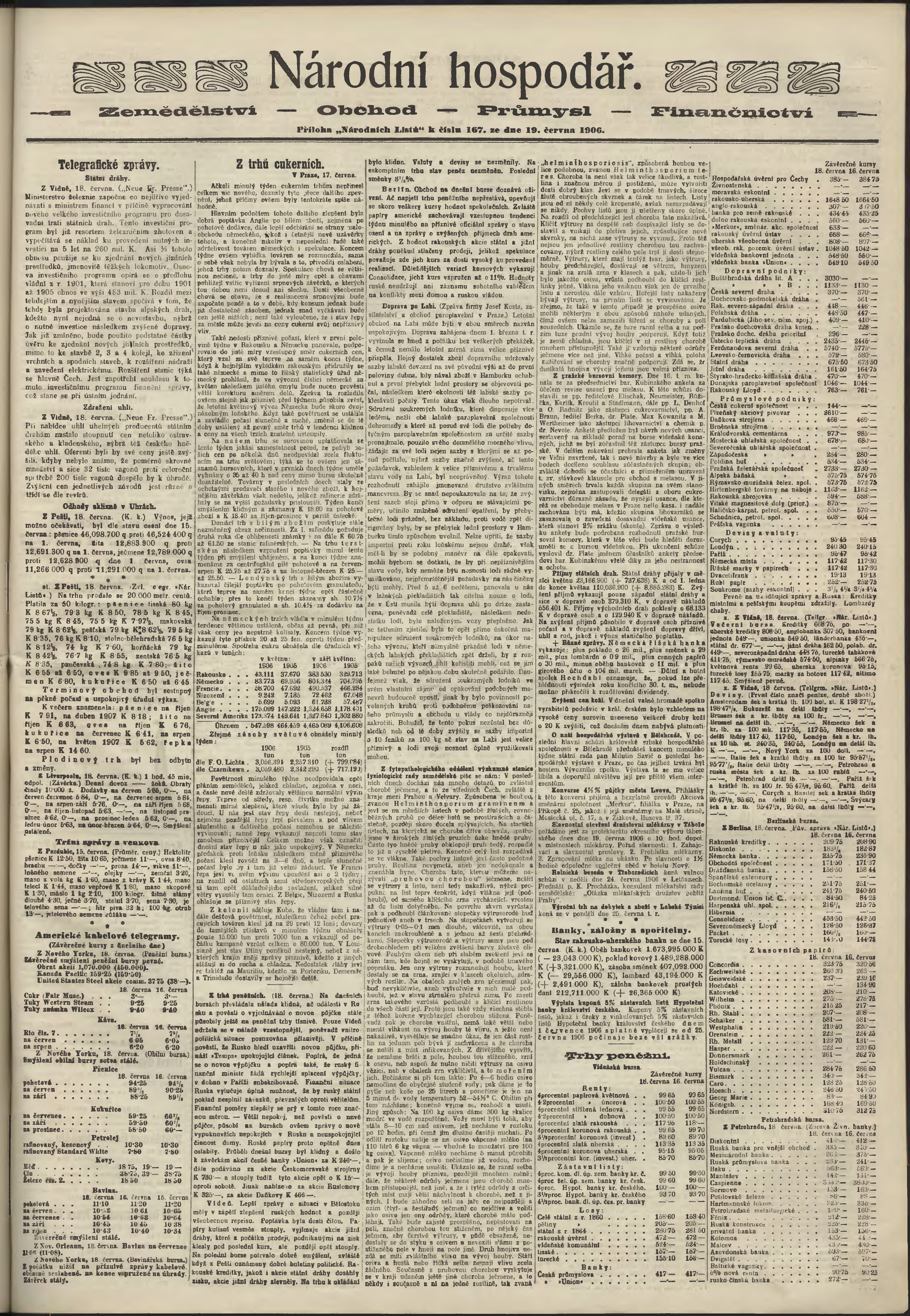 * Datum vydání výtisku: 19.6.1906 Číslo výtisku: 167 Poznámky k výtisku: ranní vydání;