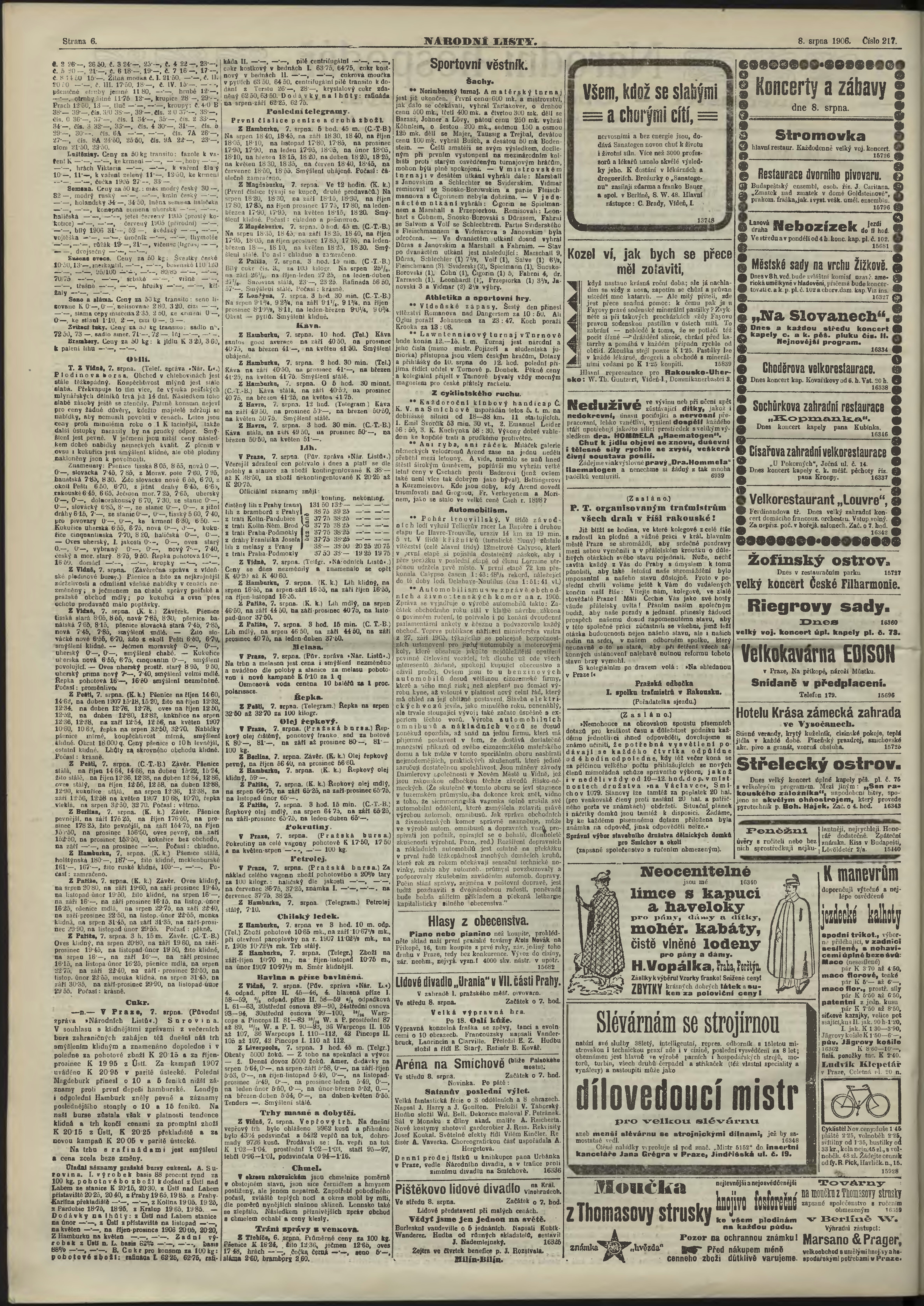 * Datum vydání výtisku: 8.8.1906 Číslo výtisku: 217 Poznámky k výtisku: ranní vydání;