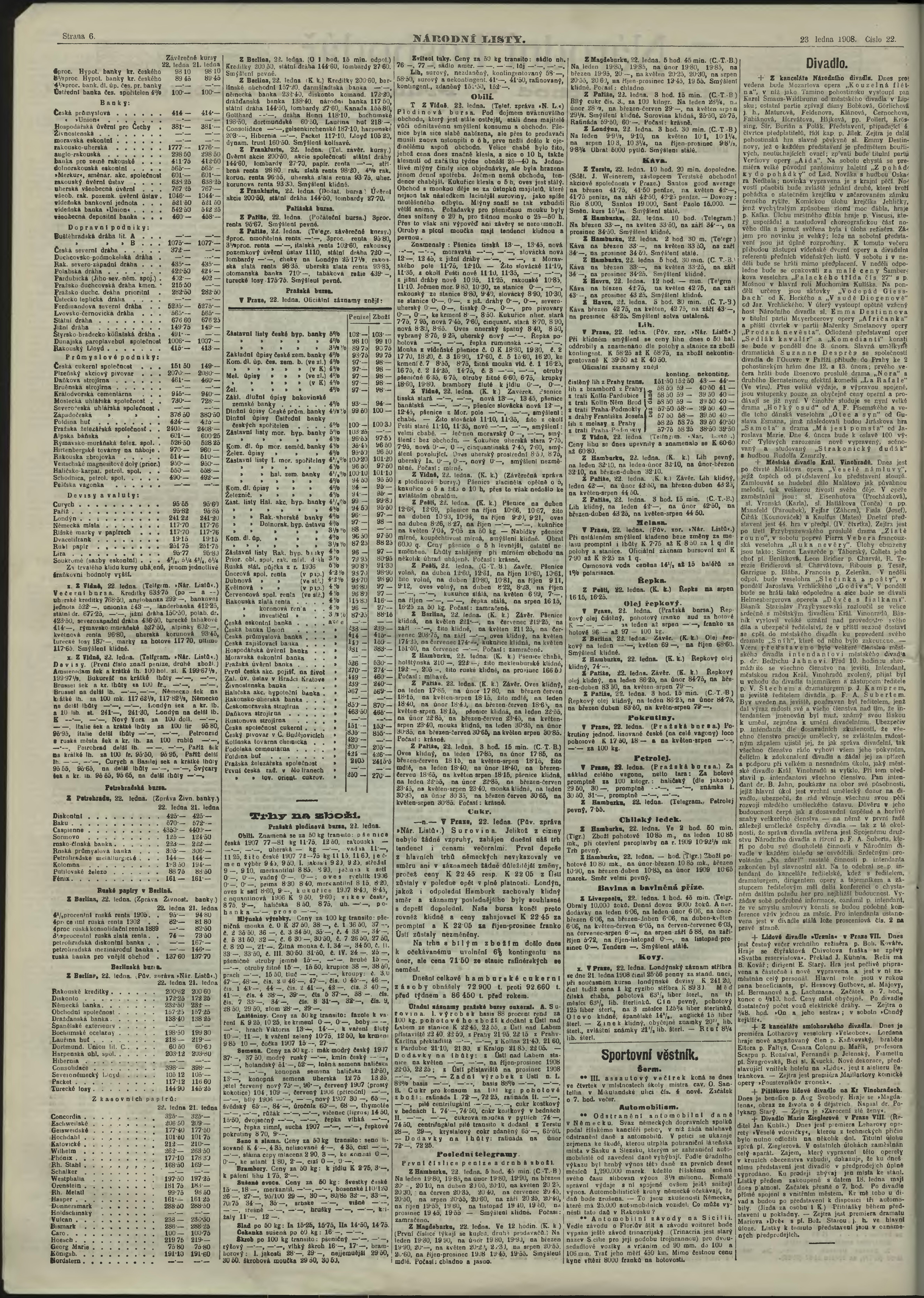 * Datum vydání výtisku: 23.1.1908 Číslo výtisku: 22 Poznámky k výtisku: ranní vydání;