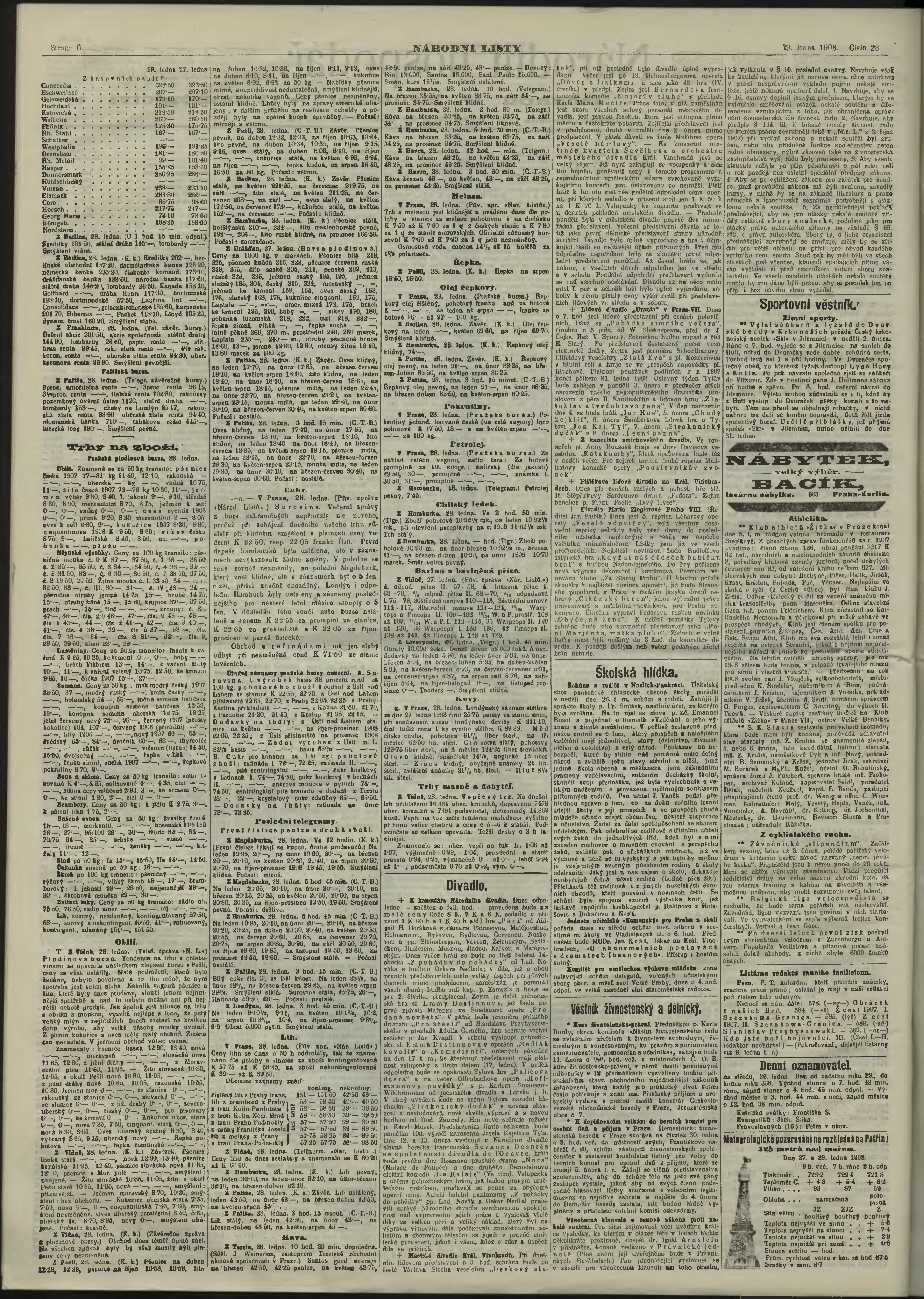 * Datum vydání výtisku: 29.1.1908 Číslo výtisku: 28 Poznámky k výtisku: ranní vydání;