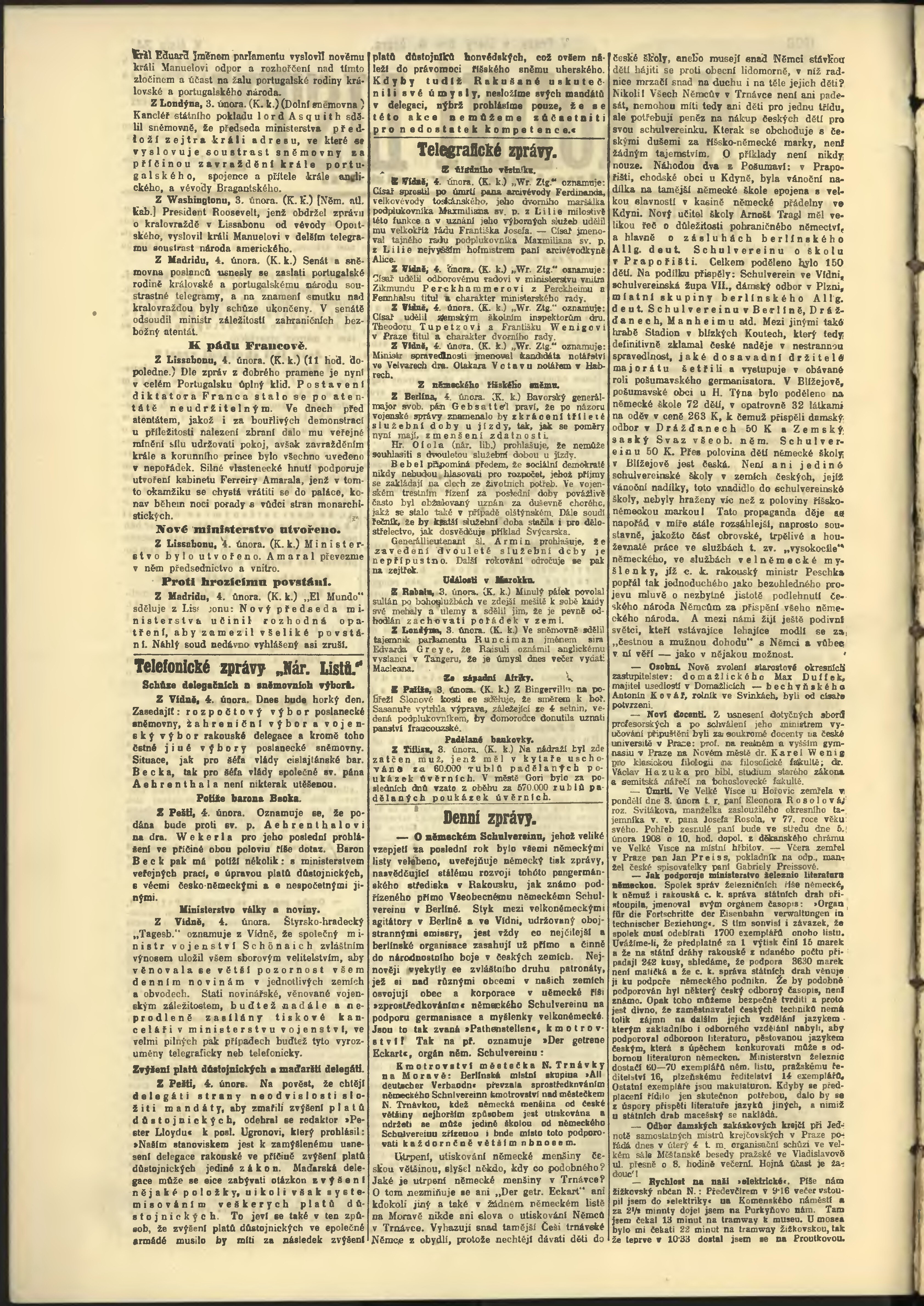* Datum vydání výtisku: 4.2.1908 Číslo výtisku: 34 Poznámky k výtisku: odpolední vydání;