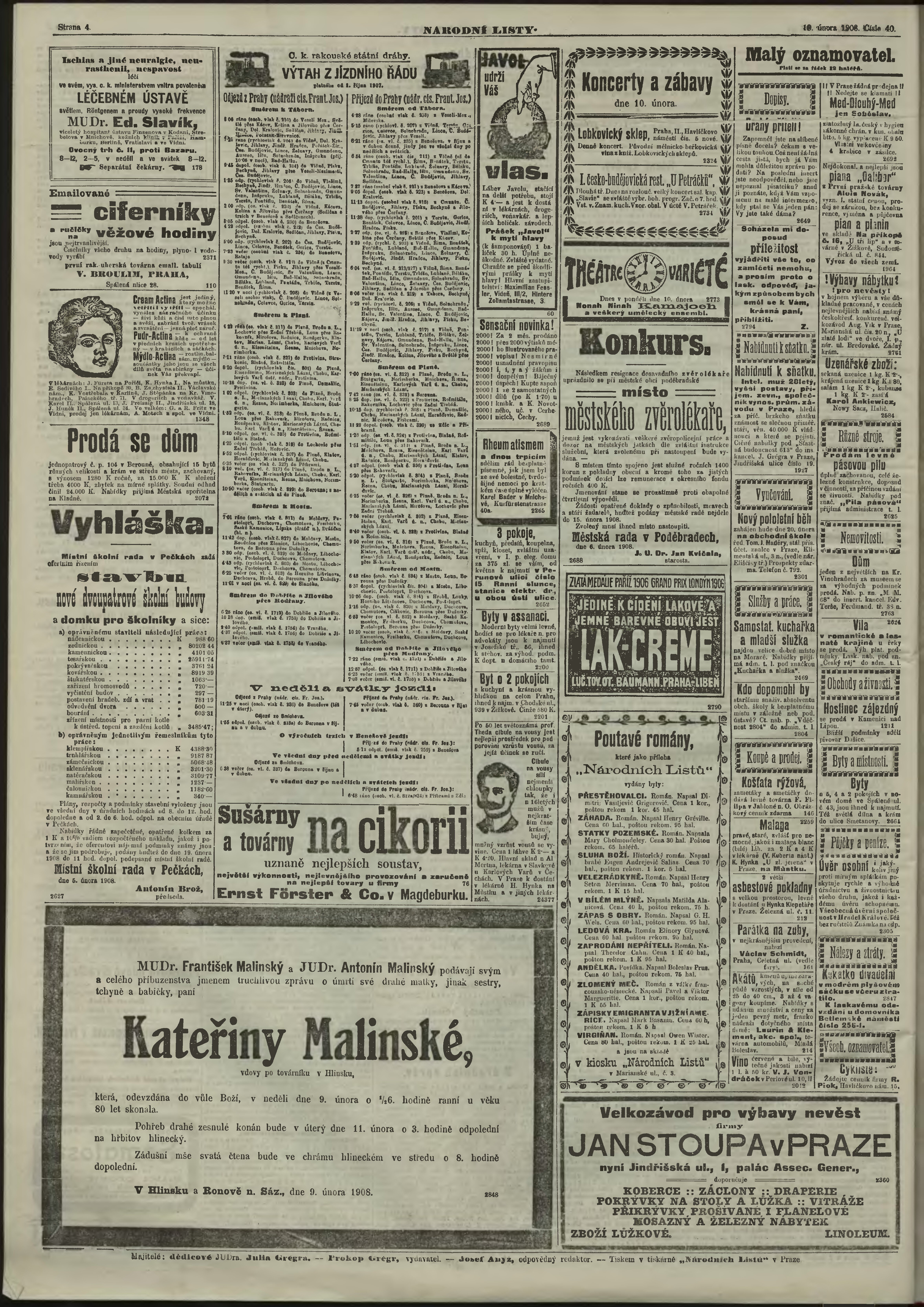 * Datum vydání výtisku: 10.2.1908 Číslo výtisku: 40 Poznámky k výtisku: ranní vydání;