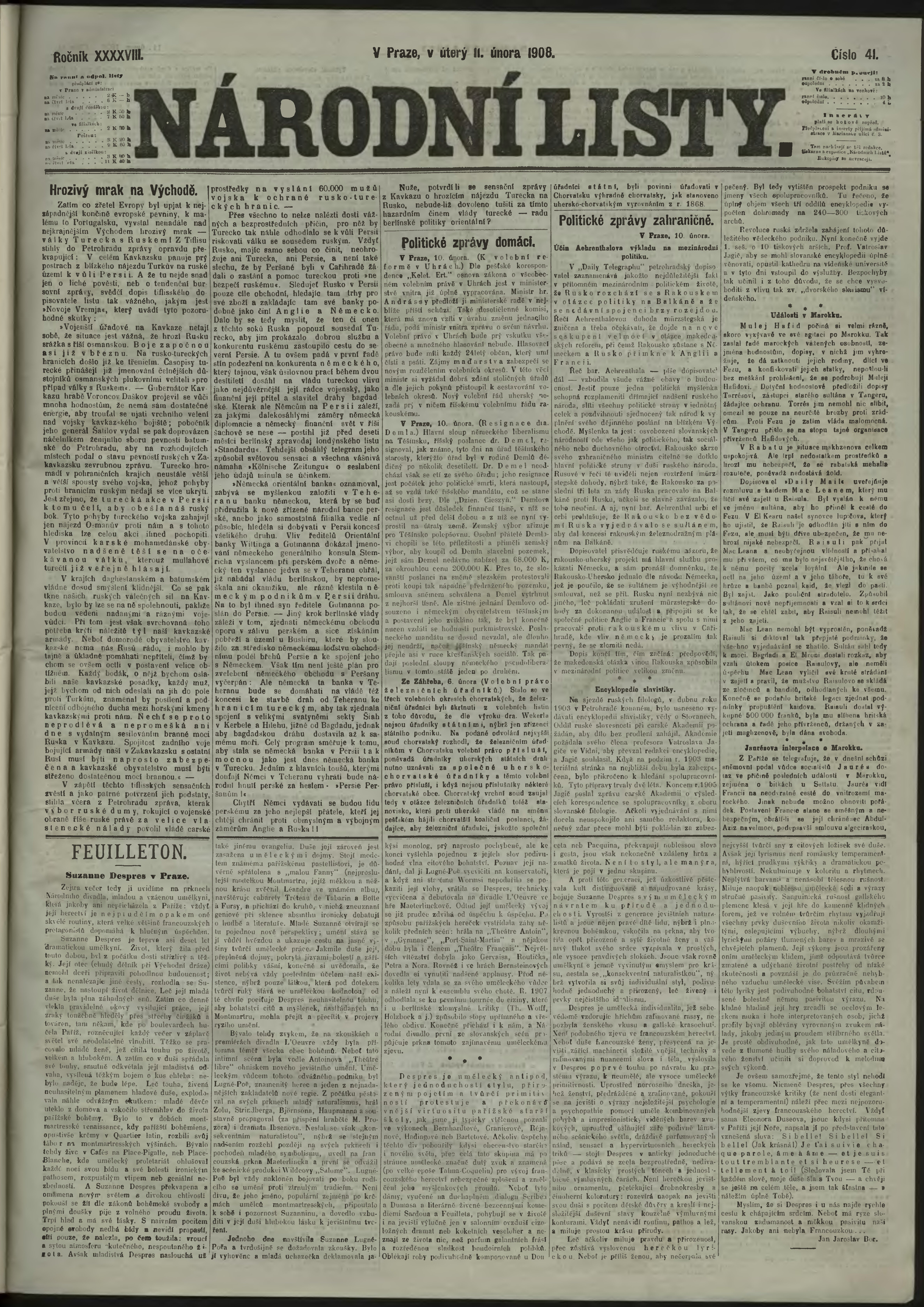 * Datum vydání výtisku: 11.2.1908 Číslo výtisku: 41 Poznámky k výtisku: ranní vydání;