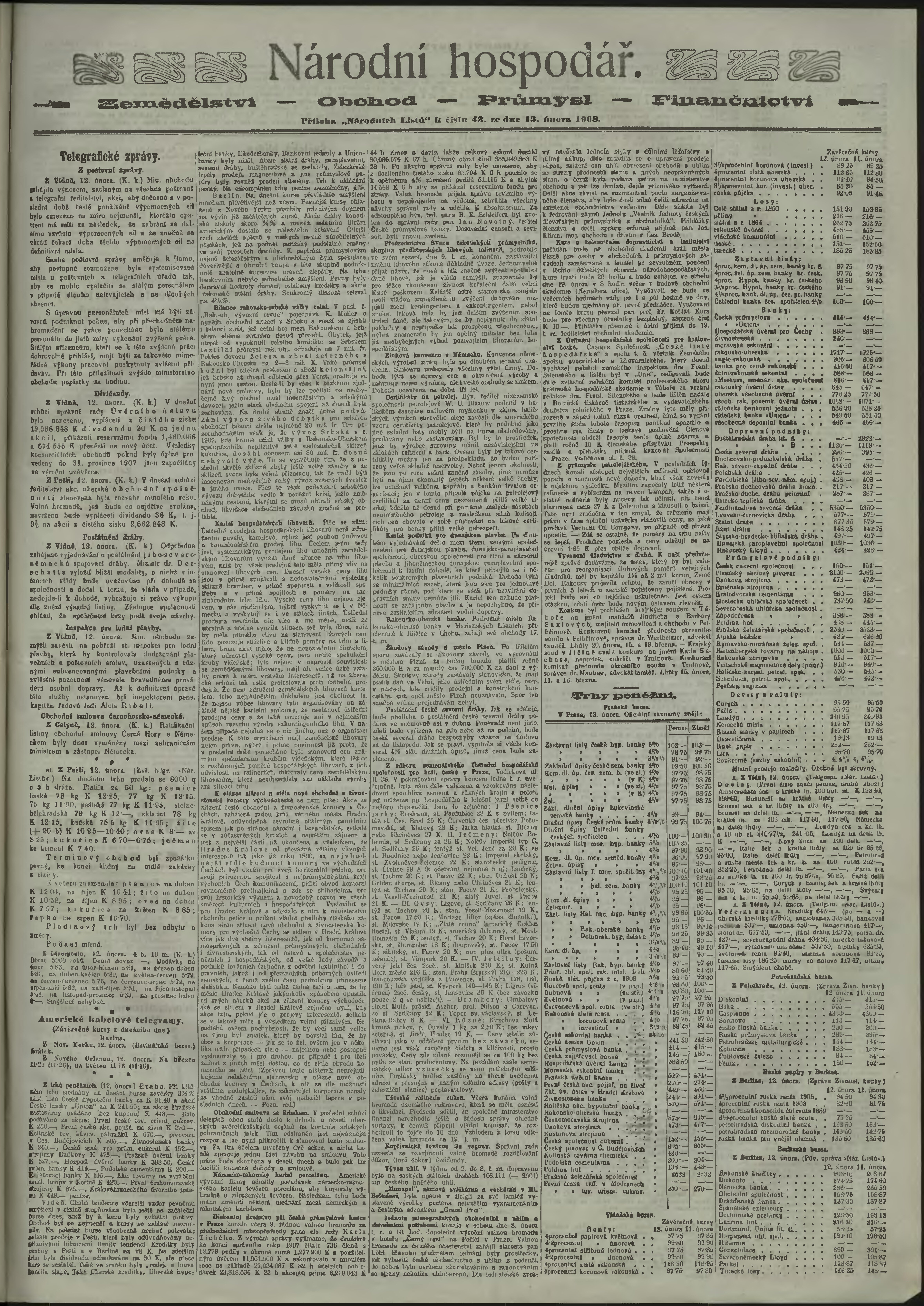 * Datum vydání výtisku: 13.2.1908 Číslo výtisku: 43 Poznámky k výtisku: ranní vydání;