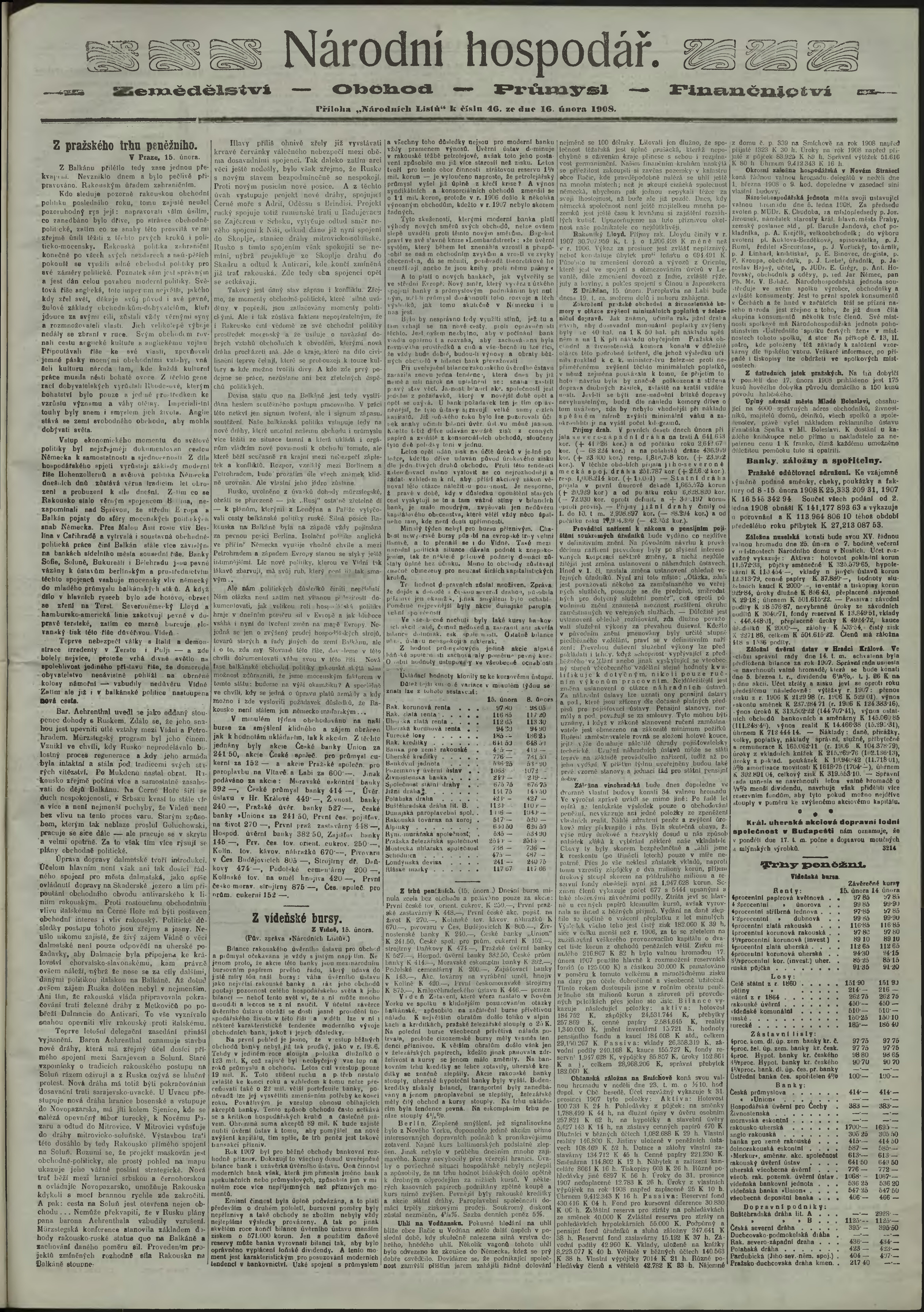 * Datum vydání výtisku: 16.2.1908 Číslo výtisku: 46 Poznámky k výtisku: ranní vydání;