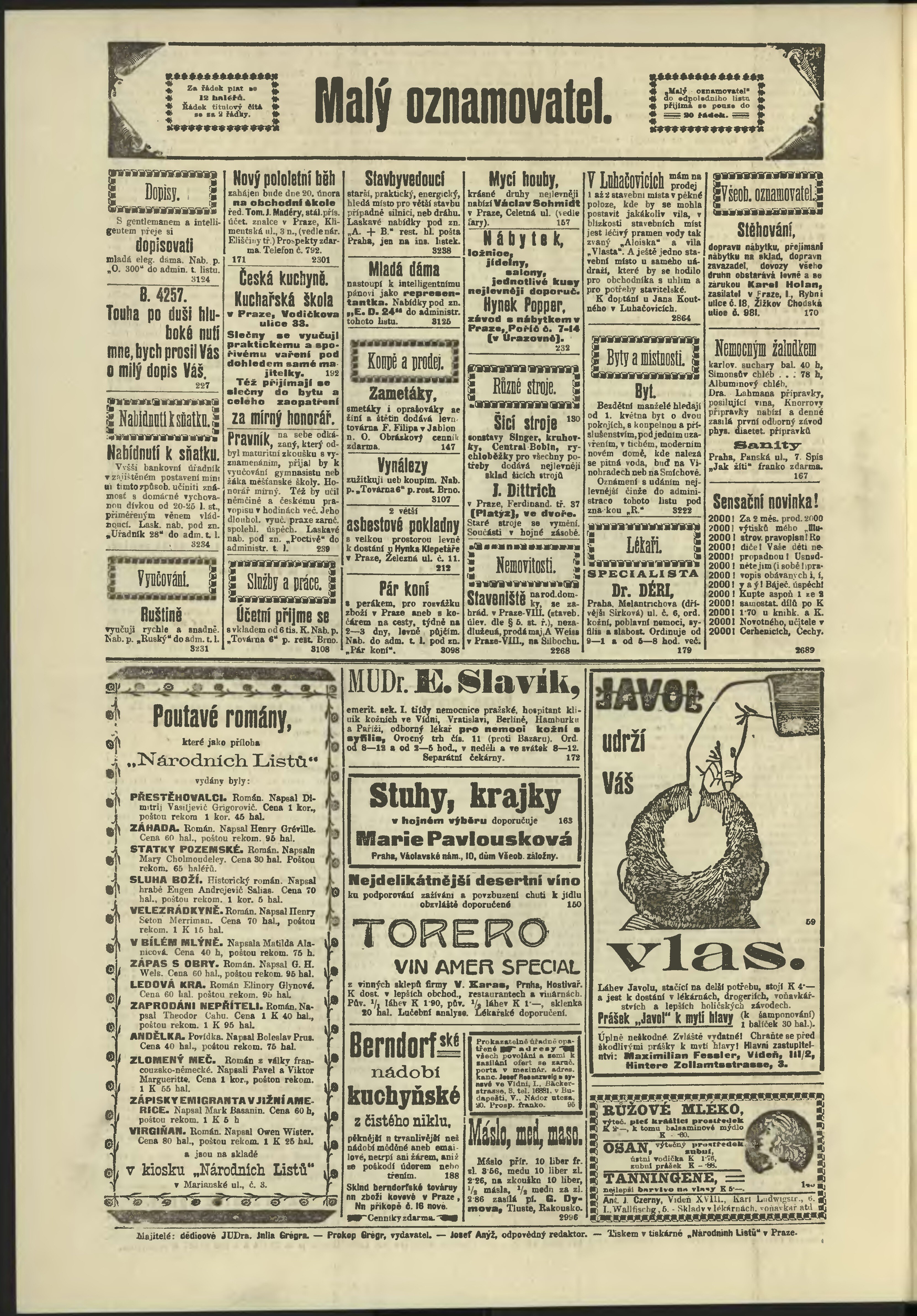 * Datum vydání výtisku: 18.2.1908 Číslo výtisku: 48 Poznámky k výtisku: odpolední vydání;