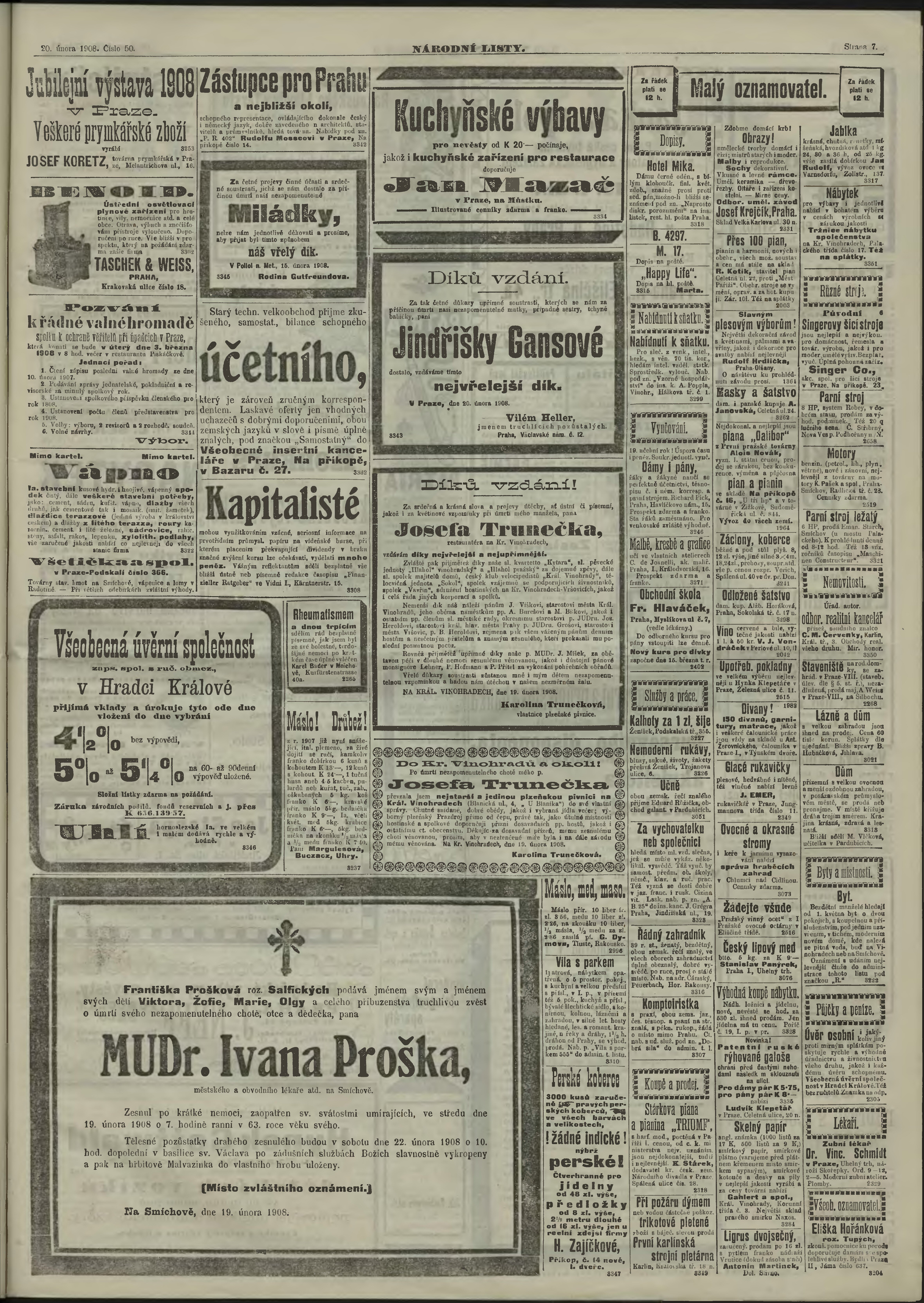* Datum vydání výtisku: 20.2.1908 Číslo výtisku: 50 Poznámky k výtisku: ranní vydání;