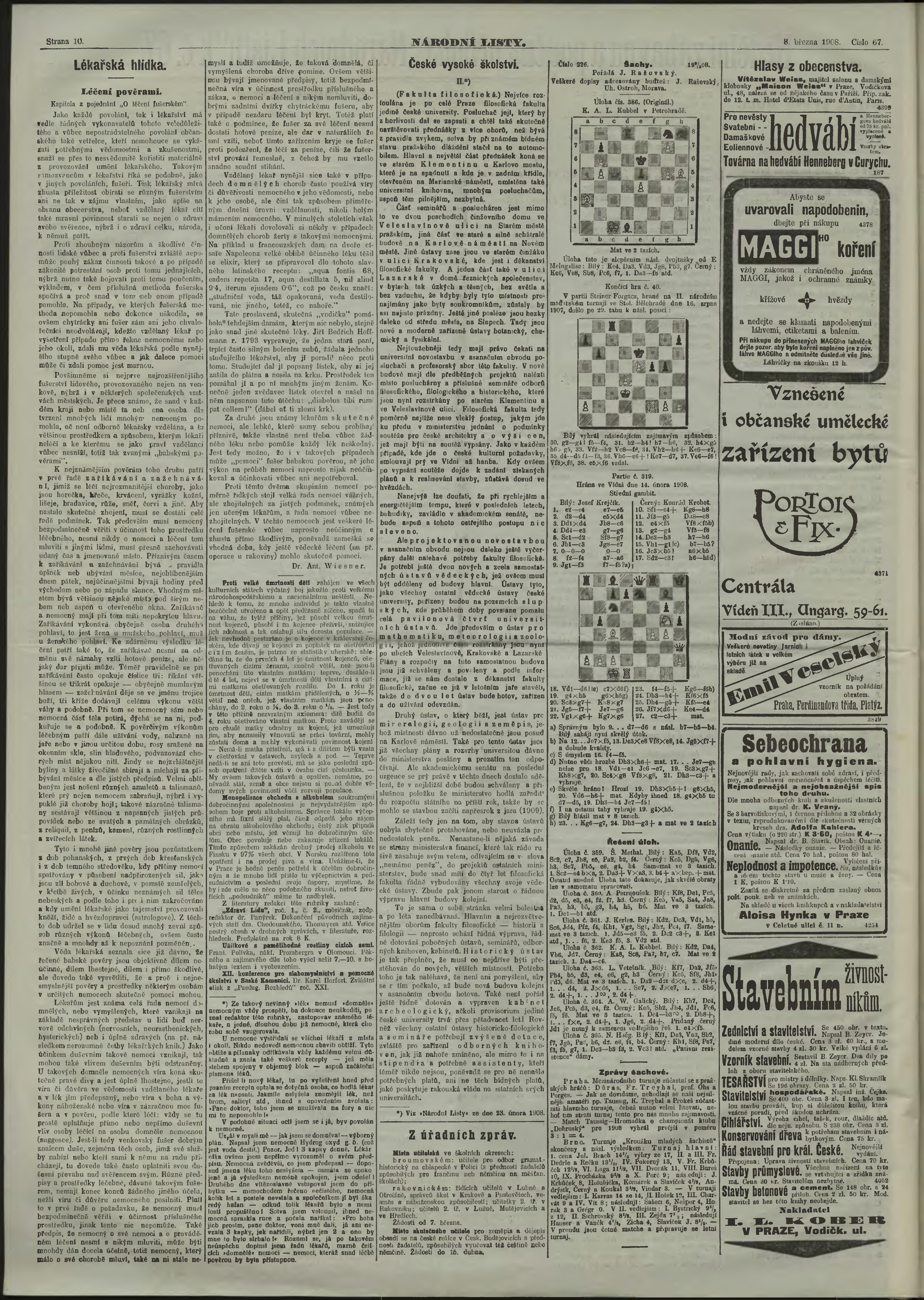* Datum vydání výtisku: 8.3.1908 Číslo výtisku: 67 Poznámky k výtisku: ranní vydání;
