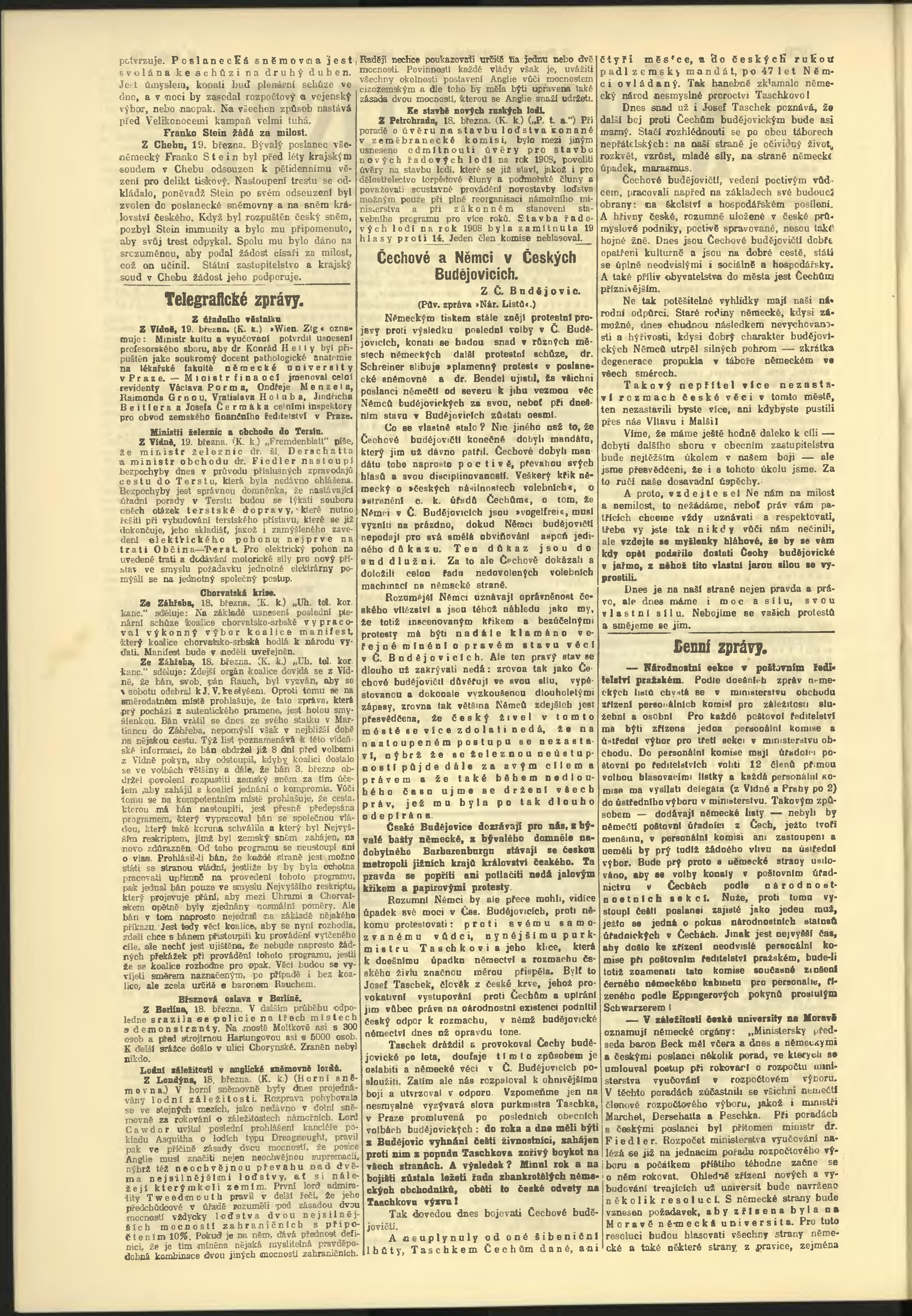 * Datum vydání výtisku: 19.3.1908 Číslo výtisku: 78 Poznámky k výtisku: odpolední vydání;
