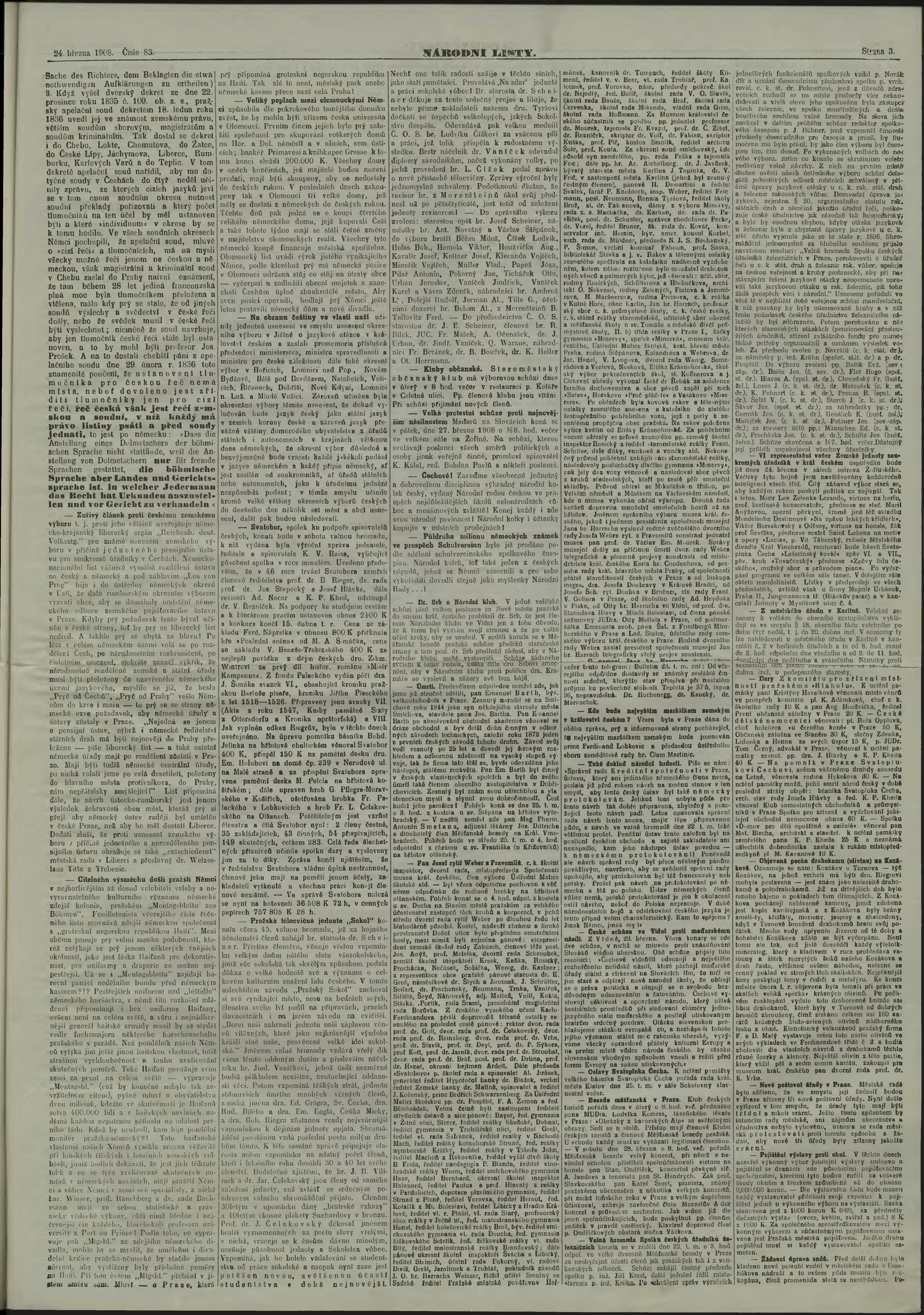 * Datum vydání výtisku: 24.3.1908 Číslo výtisku: 83 Poznámky k výtisku: ranní vydání;