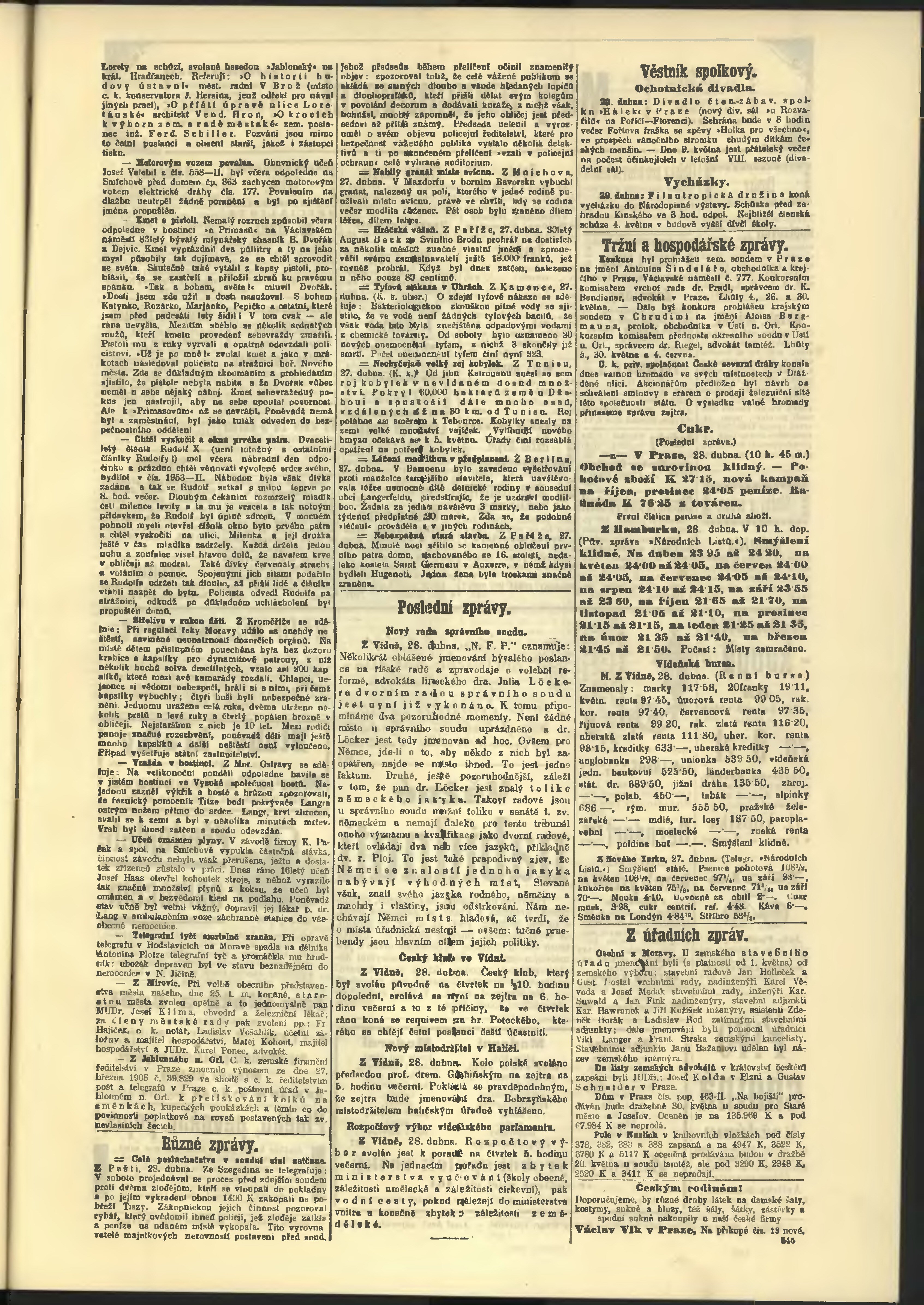 * Datum vydání výtisku: 28.4.1908 Číslo výtisku: 117 Poznámky k výtisku: odpolední vydání;