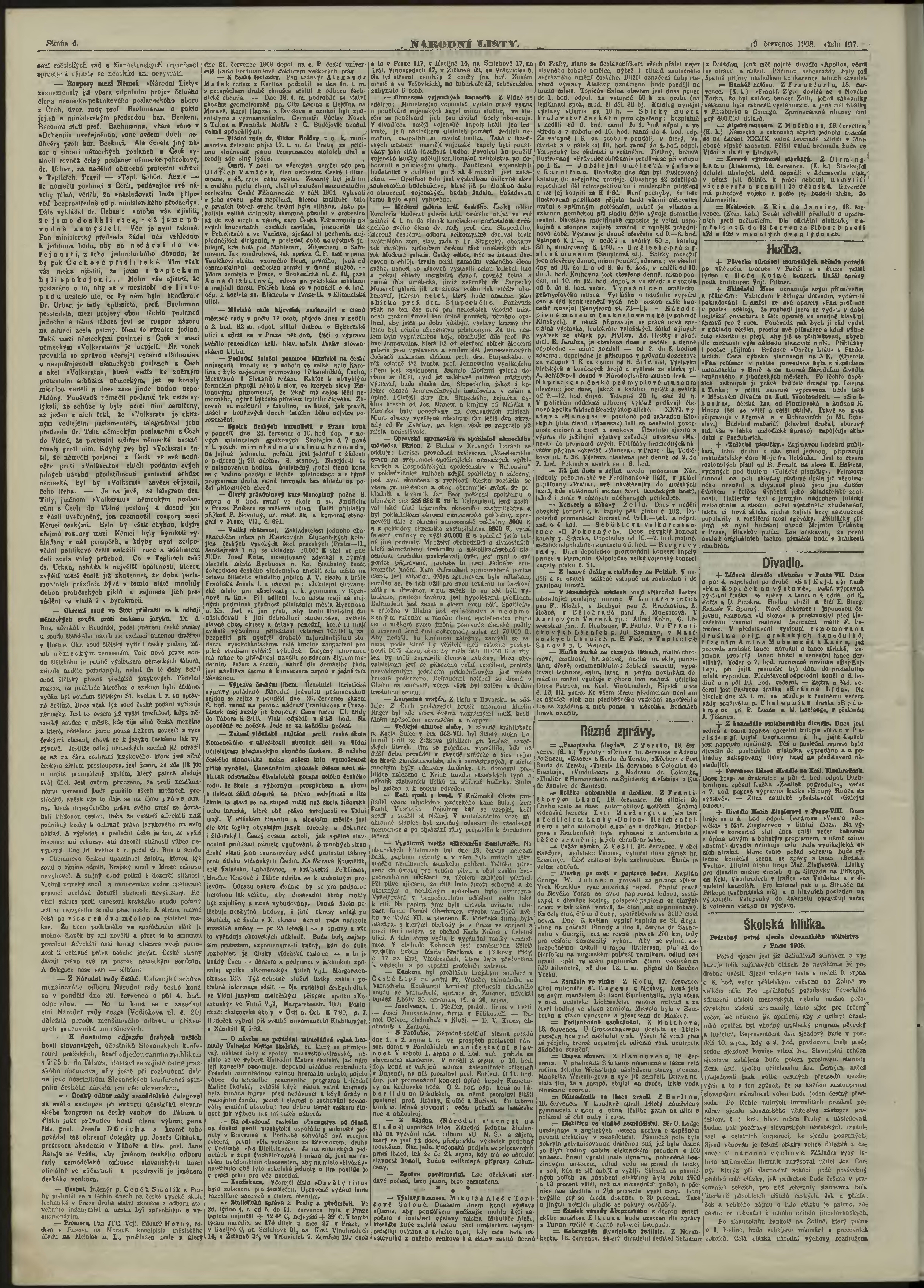 * Datum vydání výtisku: 19.7.1908 Číslo výtisku: 197 Poznámky k výtisku: ranní vydání;