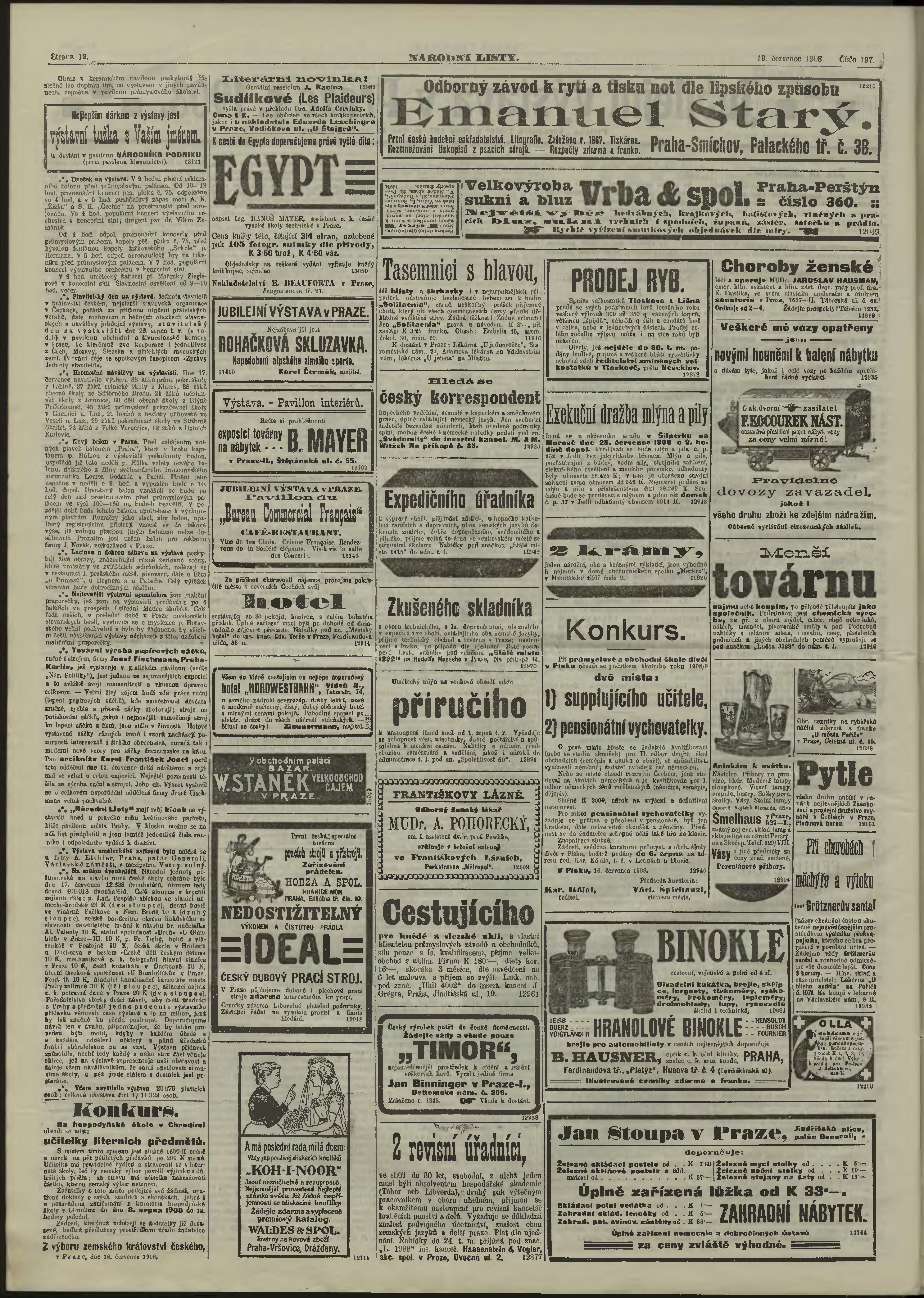 * Datum vydání výtisku: 19.7.1908 Číslo výtisku: 197 Poznámky k výtisku: ranní vydání;