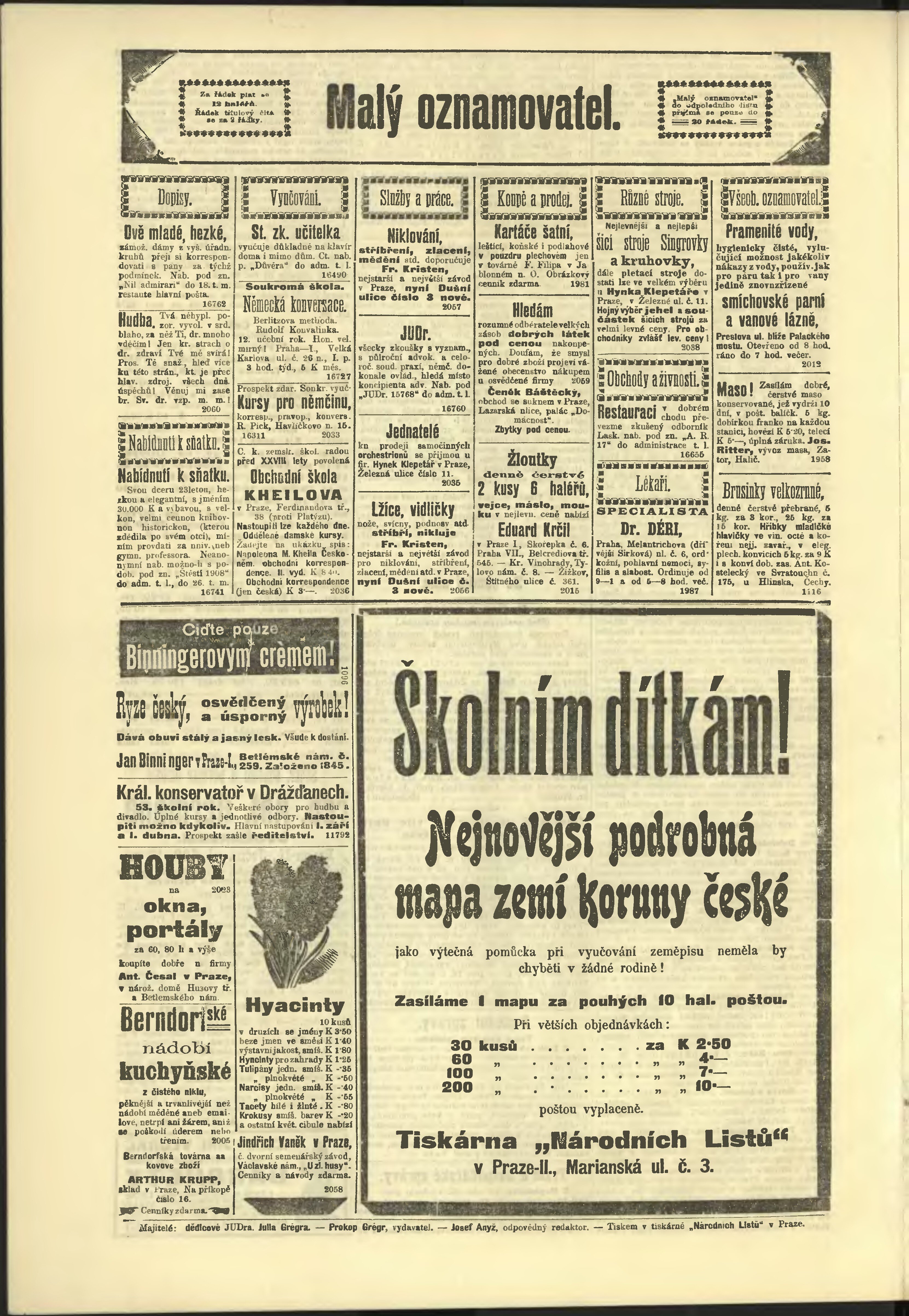 * Datum vydání výtisku: 16.9.1908 Číslo výtisku: 256 Poznámky k výtisku: odpolední vydání;