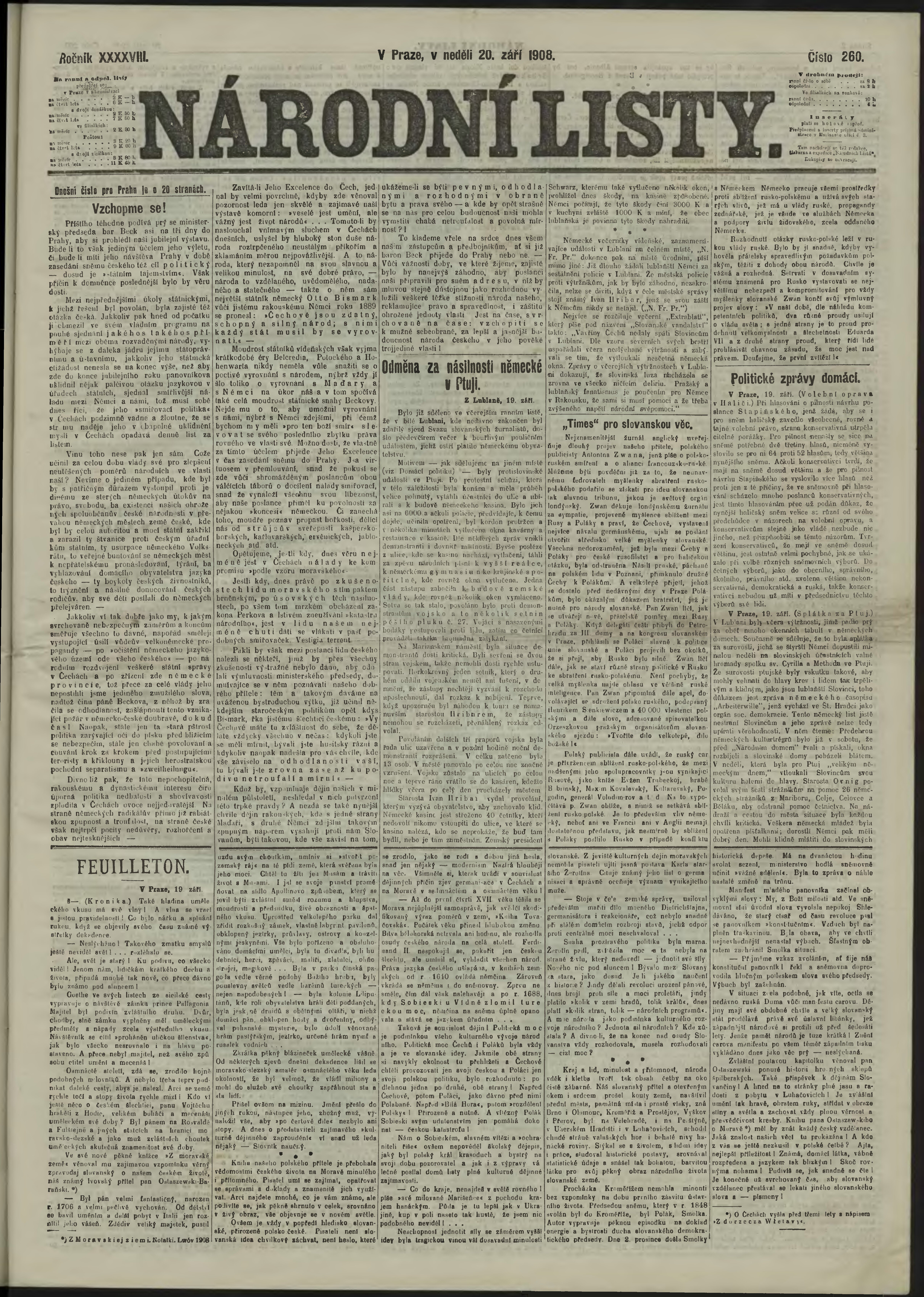 * Datum vydání výtisku: 20.9.1908 Číslo výtisku: 260 Poznámky k výtisku: ranní vydání;