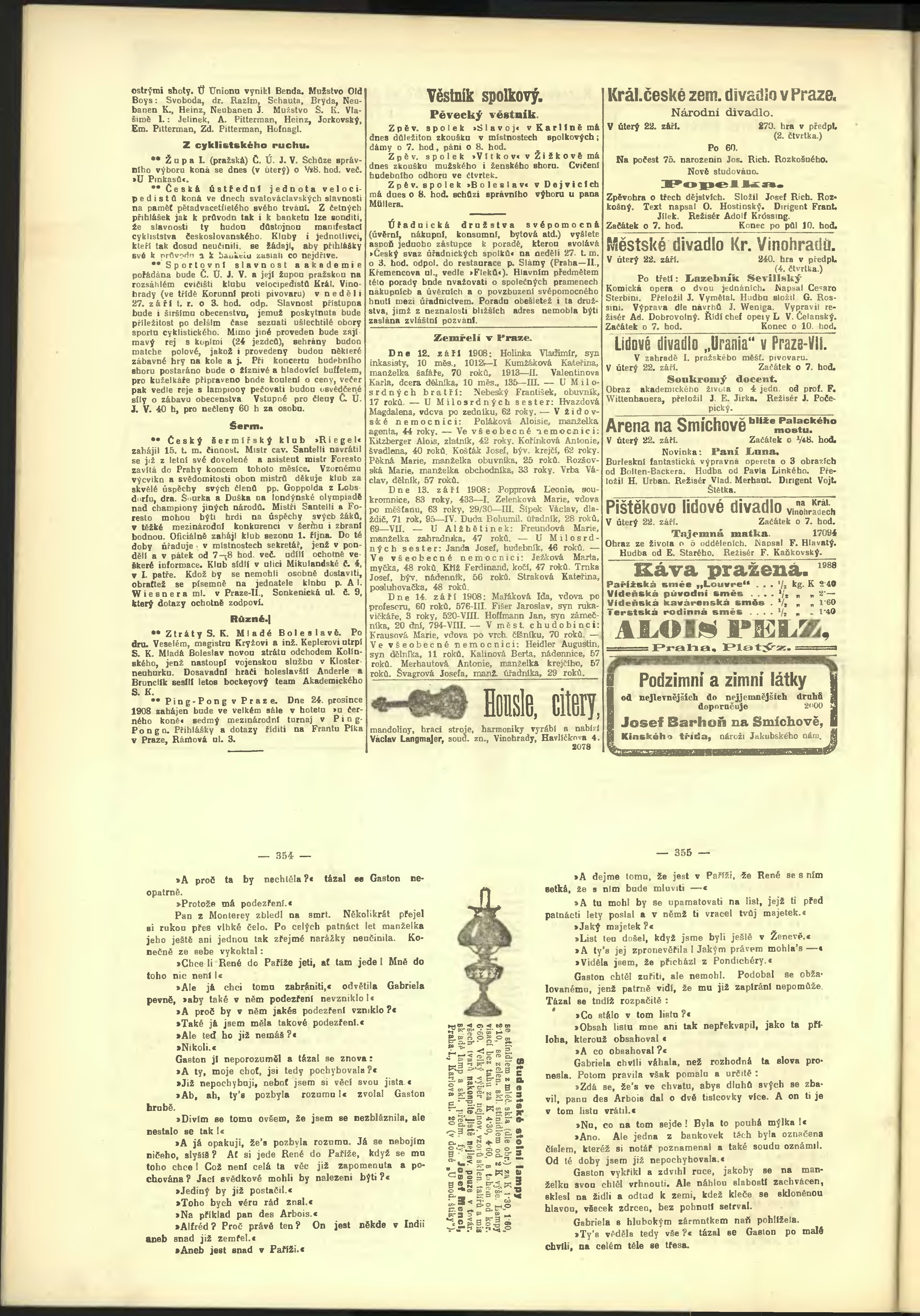 * Datum vydání výtisku: 22.9.1908 Číslo výtisku: 262 Poznámky k výtisku: odpolední vydání;