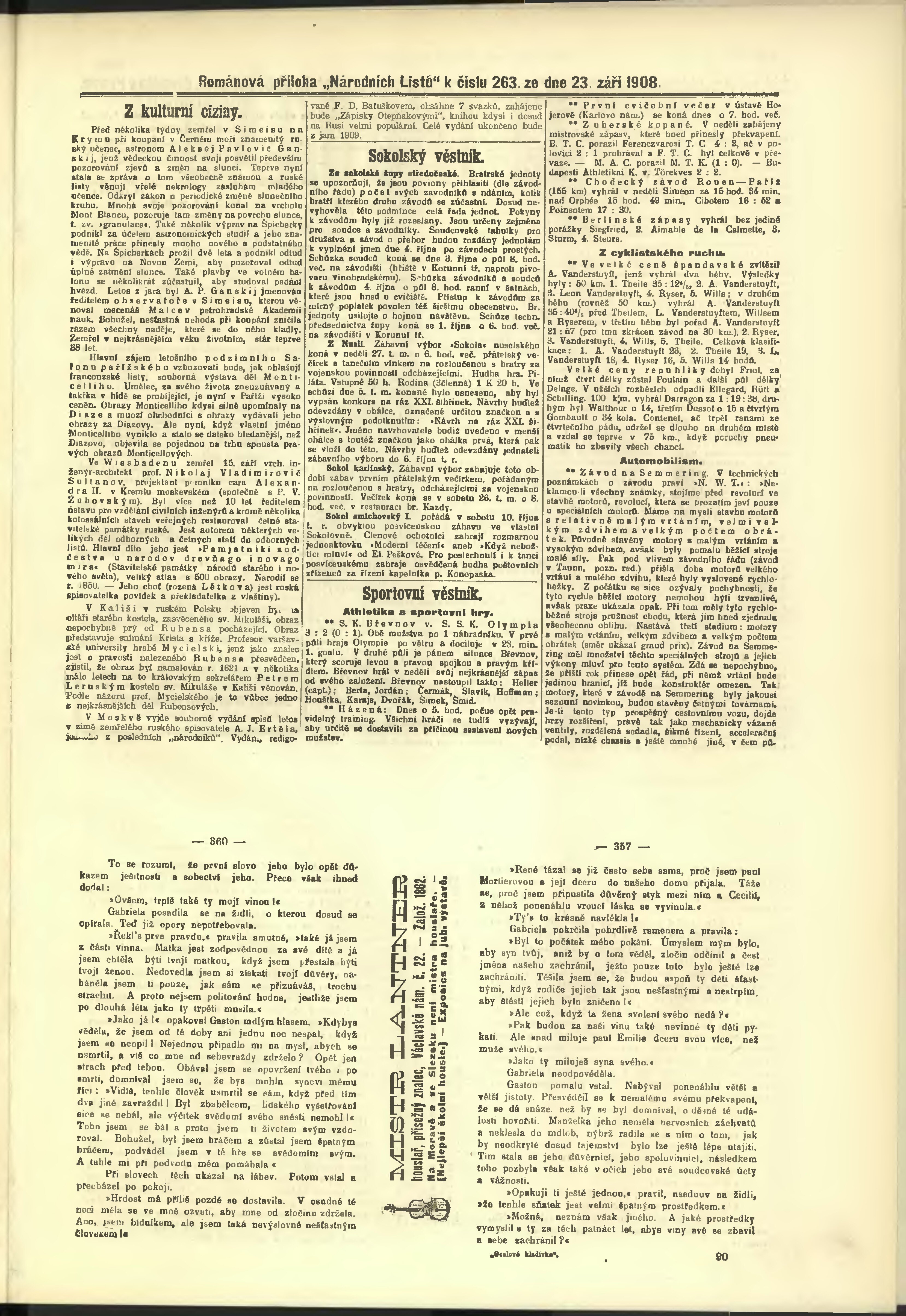* Datum vydání výtisku: 23.9.1908 Číslo výtisku: 263 Poznámky k výtisku: odpolední vydání;