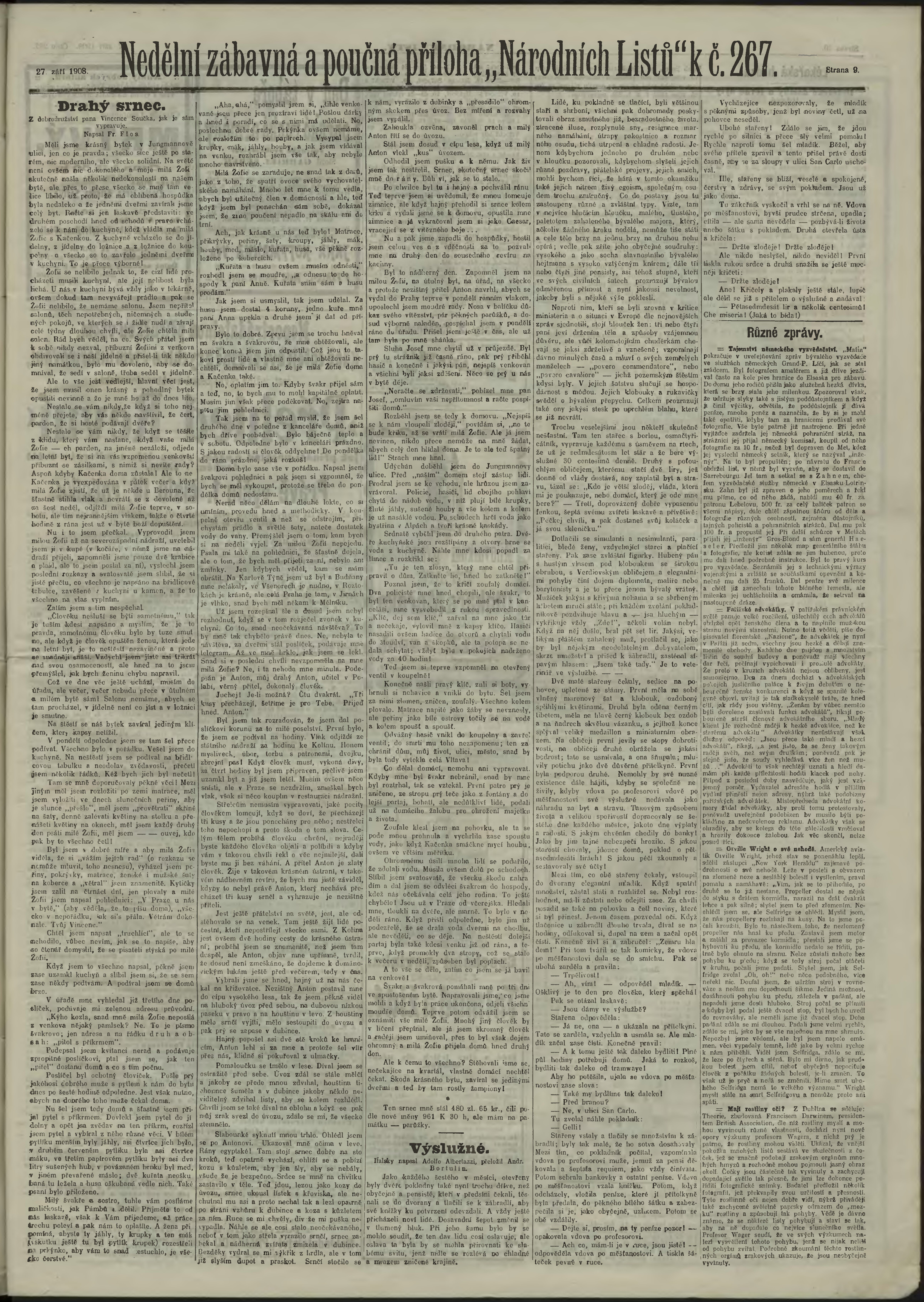 * Datum vydání výtisku: 27.9.1908 Číslo výtisku: 267 Poznámky k výtisku: ranní vydání;