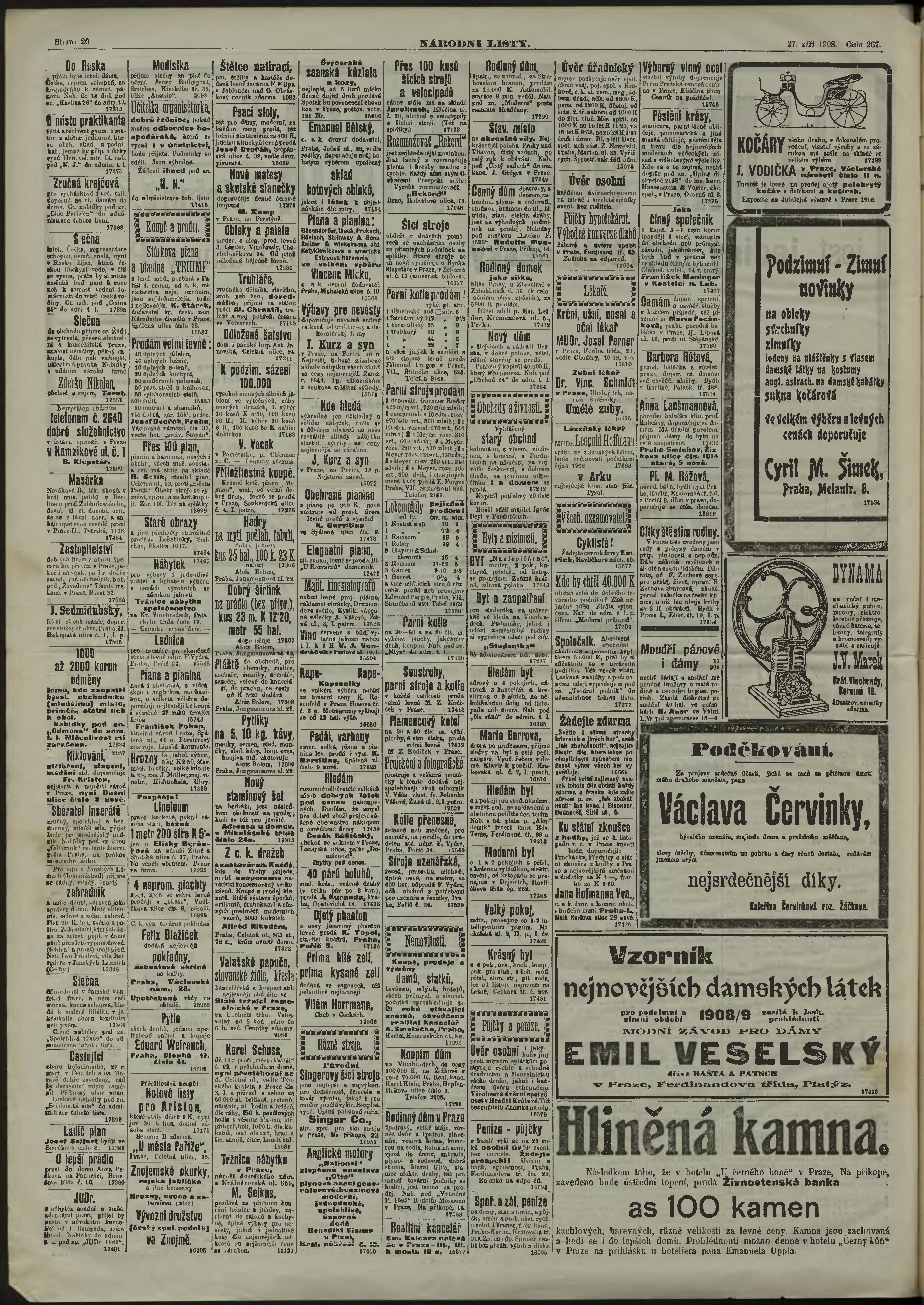 * Datum vydání výtisku: 27.9.1908 Číslo výtisku: 267 Poznámky k výtisku: ranní vydání;