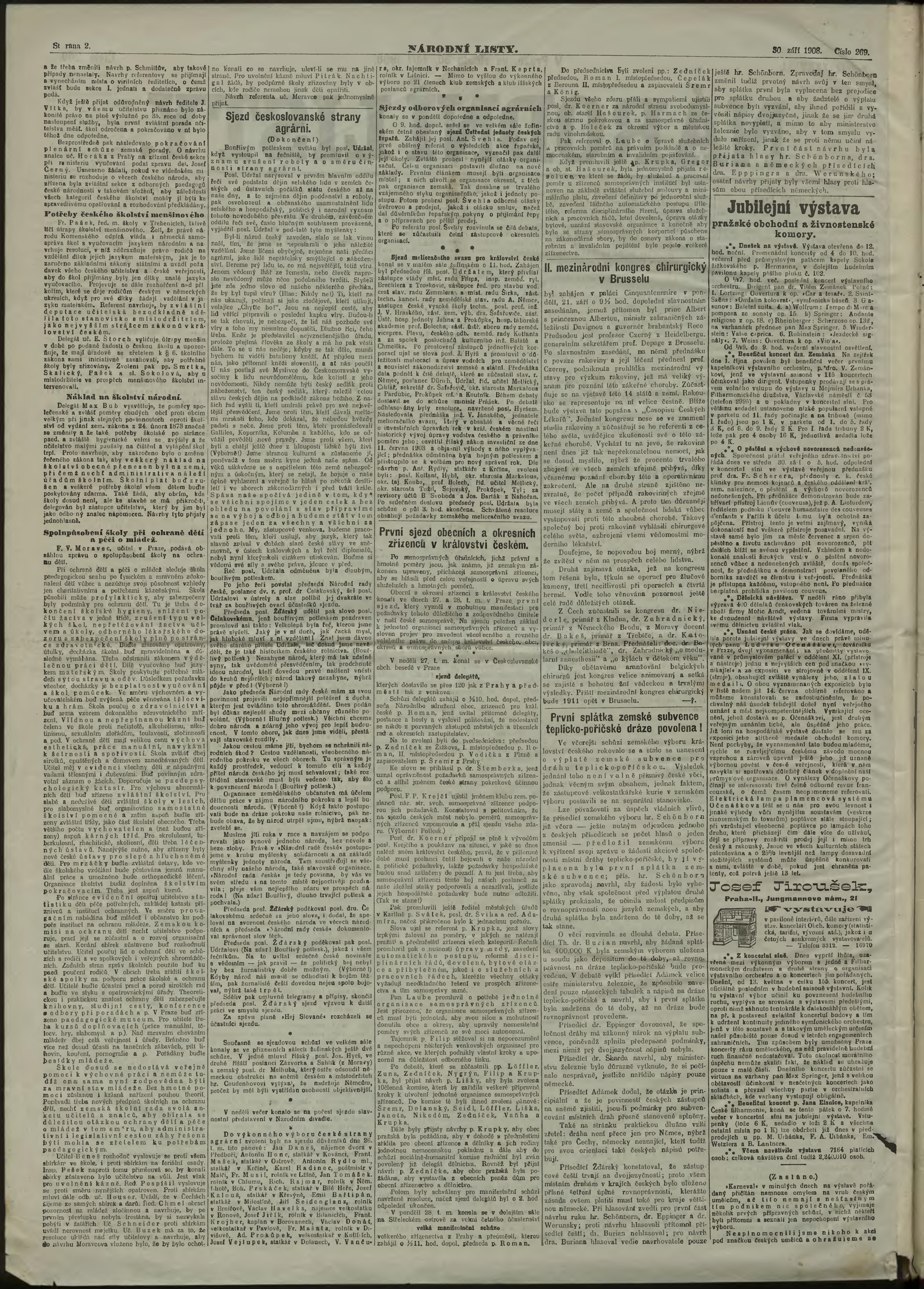 * Datum vydání výtisku: 30.9.1908 Číslo výtisku: 269 Poznámky k výtisku: ranní vydání;