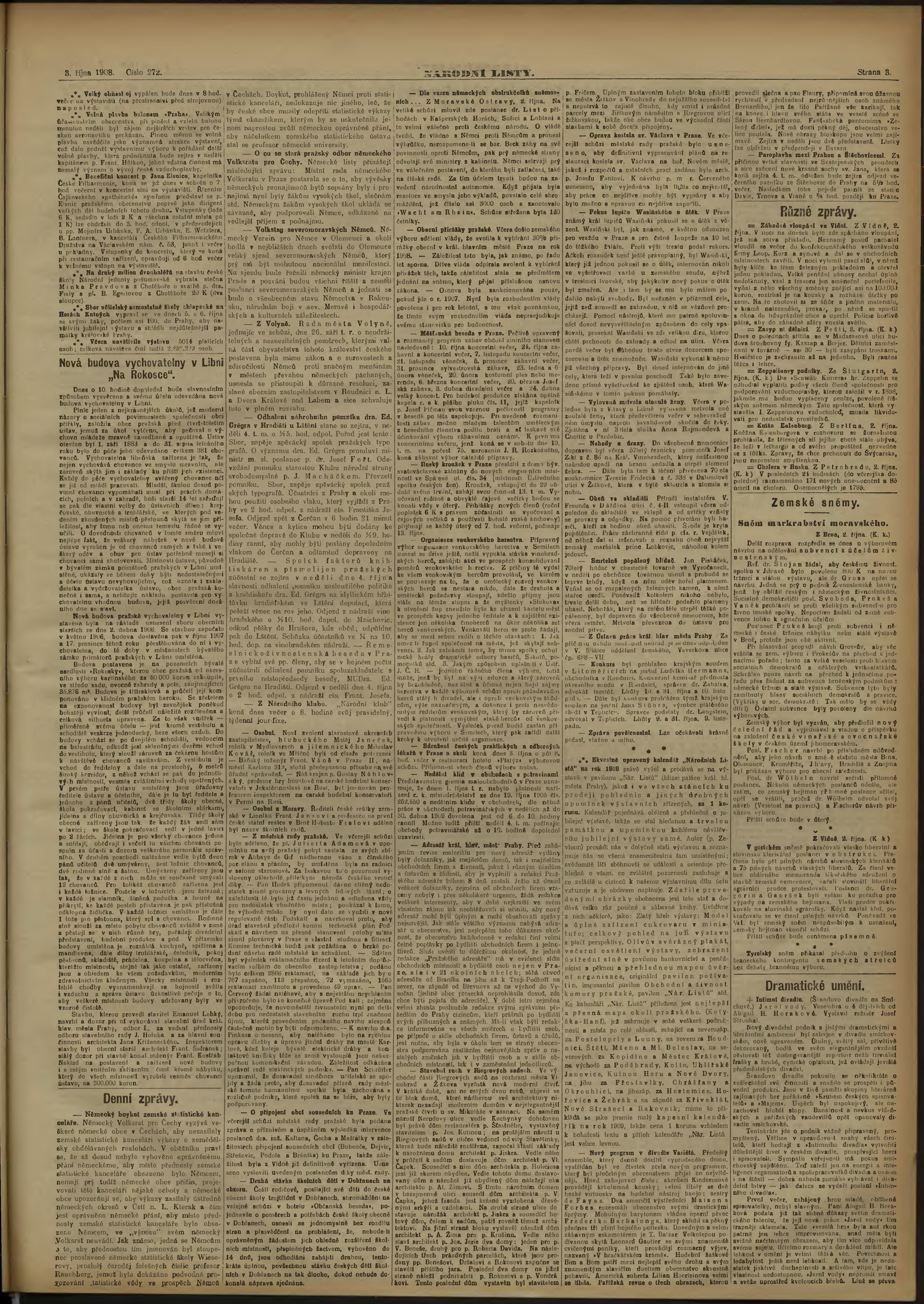 * Datum vydání výtisku: 3.10.1908 Číslo výtisku: 272 Poznámky k výtisku: ranní vydání;