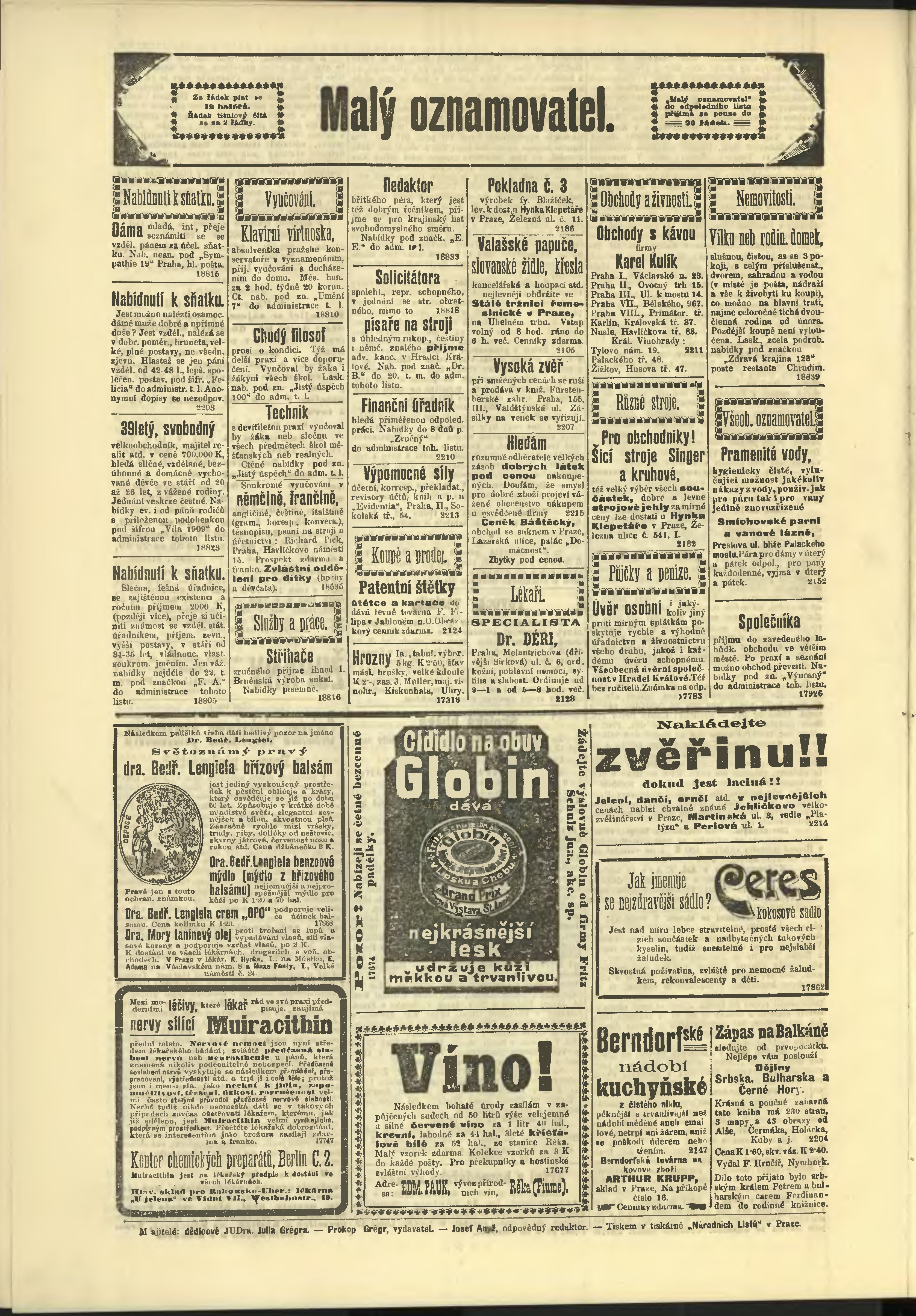 * Datum vydání výtisku: 14.10.1908 Číslo výtisku: 283 Poznámky k výtisku: odpolední vydání;