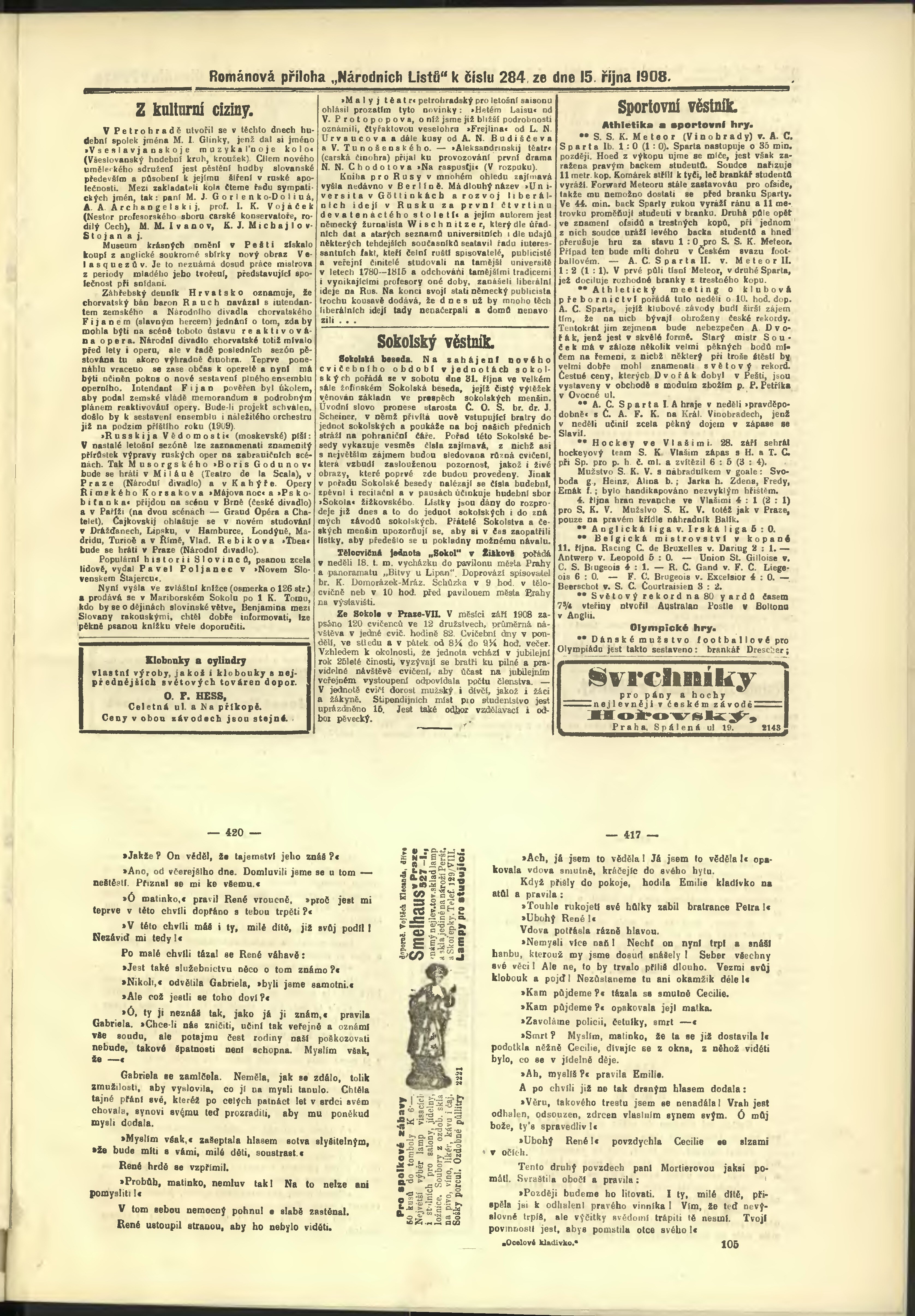 * Datum vydání výtisku: 15.10.1908 Číslo výtisku: 284 Poznámky k výtisku: odpolední vydání;