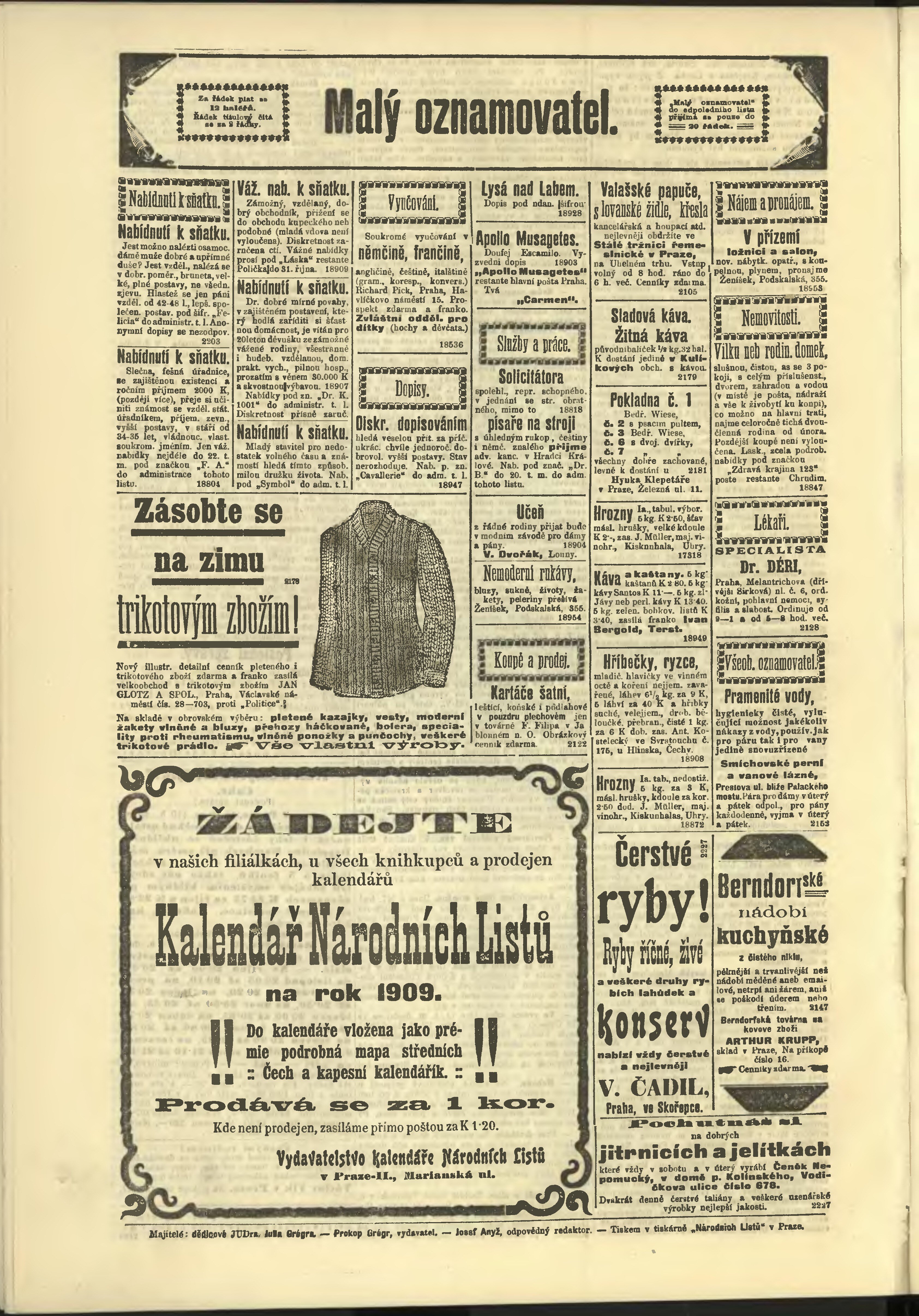 * Datum vydání výtisku: 16.10.1908 Číslo výtisku: 285 Poznámky k výtisku: odpolední vydání;