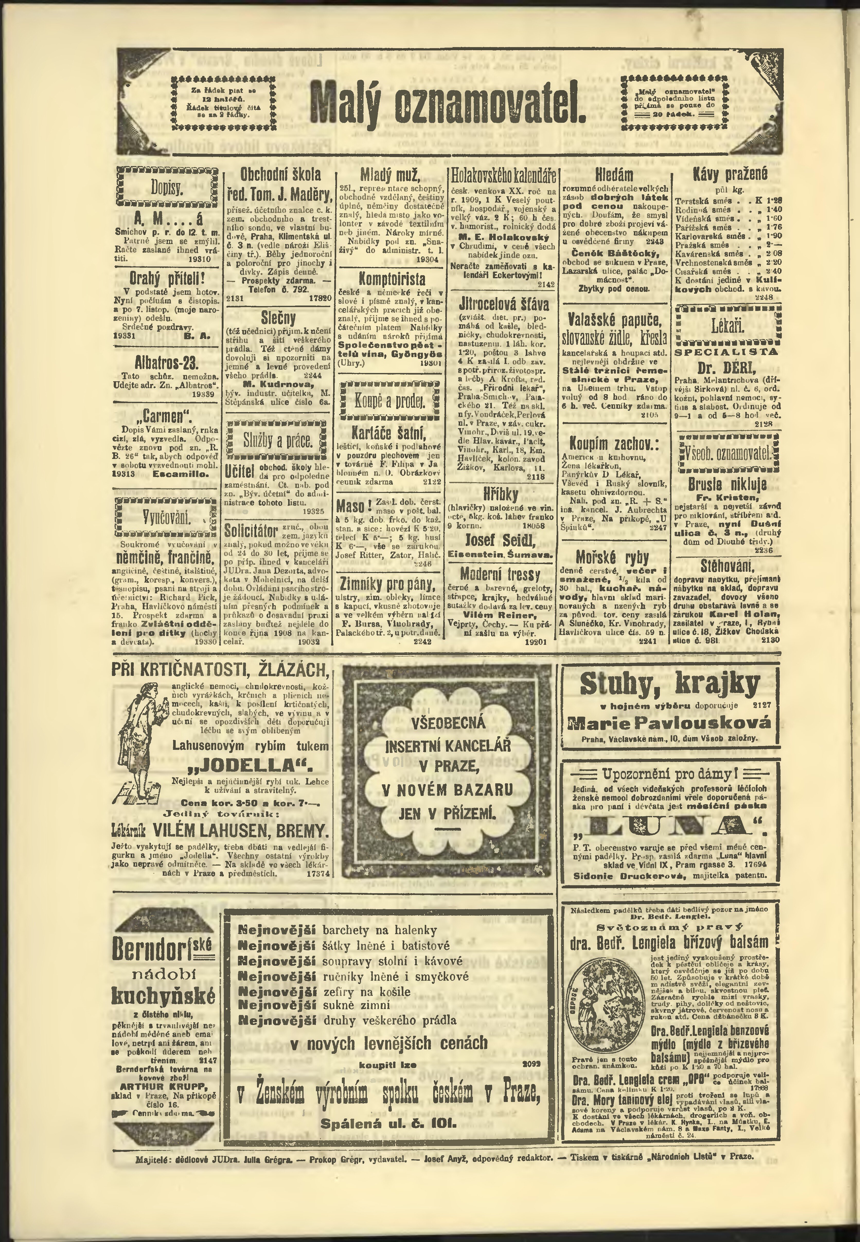 * Datum vydání výtisku: 22.10.1908 Číslo výtisku: 291 Poznámky k výtisku: odpolední vydání;