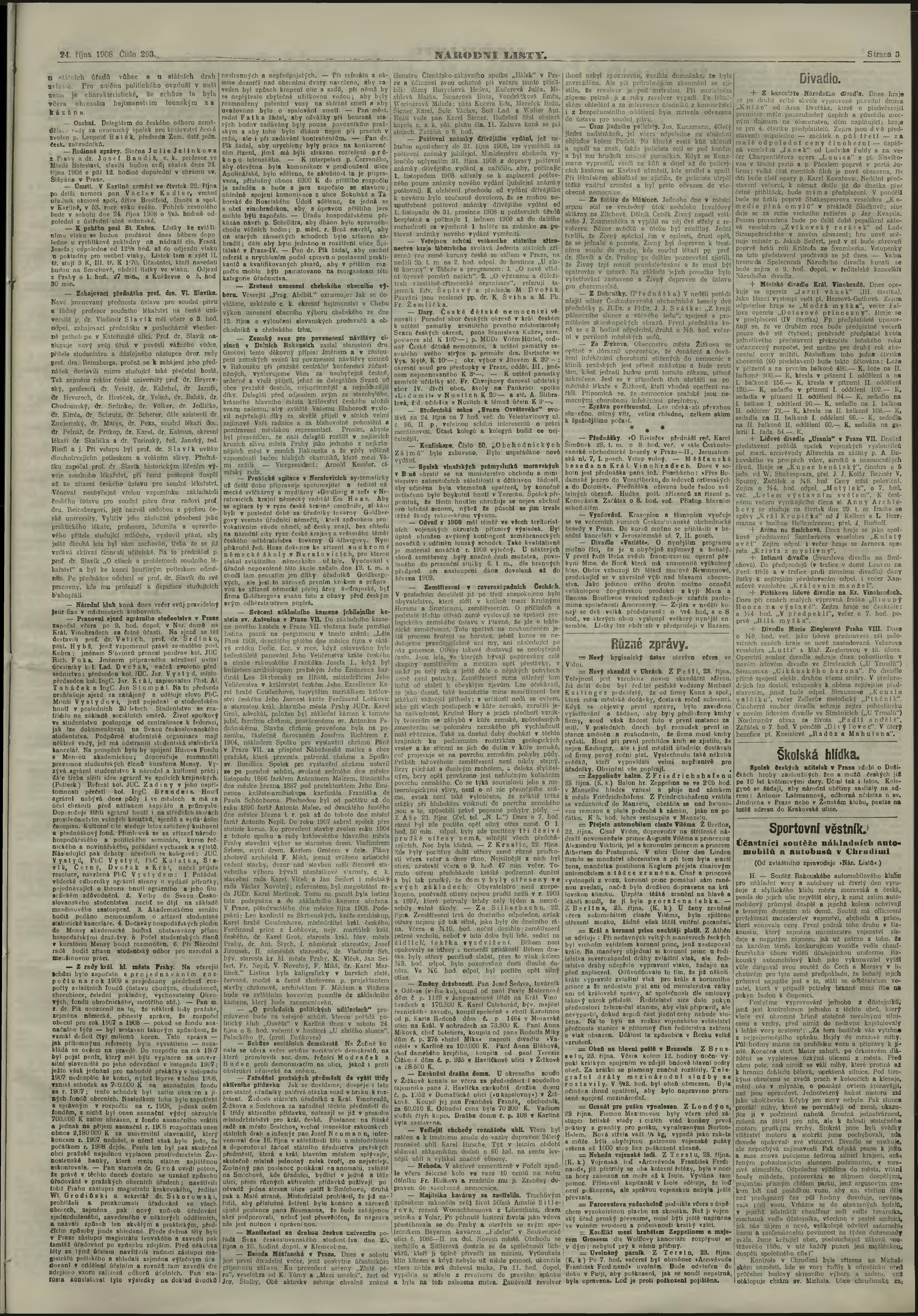 * Datum vydání výtisku: 24.10.1908 Číslo výtisku: 293 Poznámky k výtisku: ranní vydání;