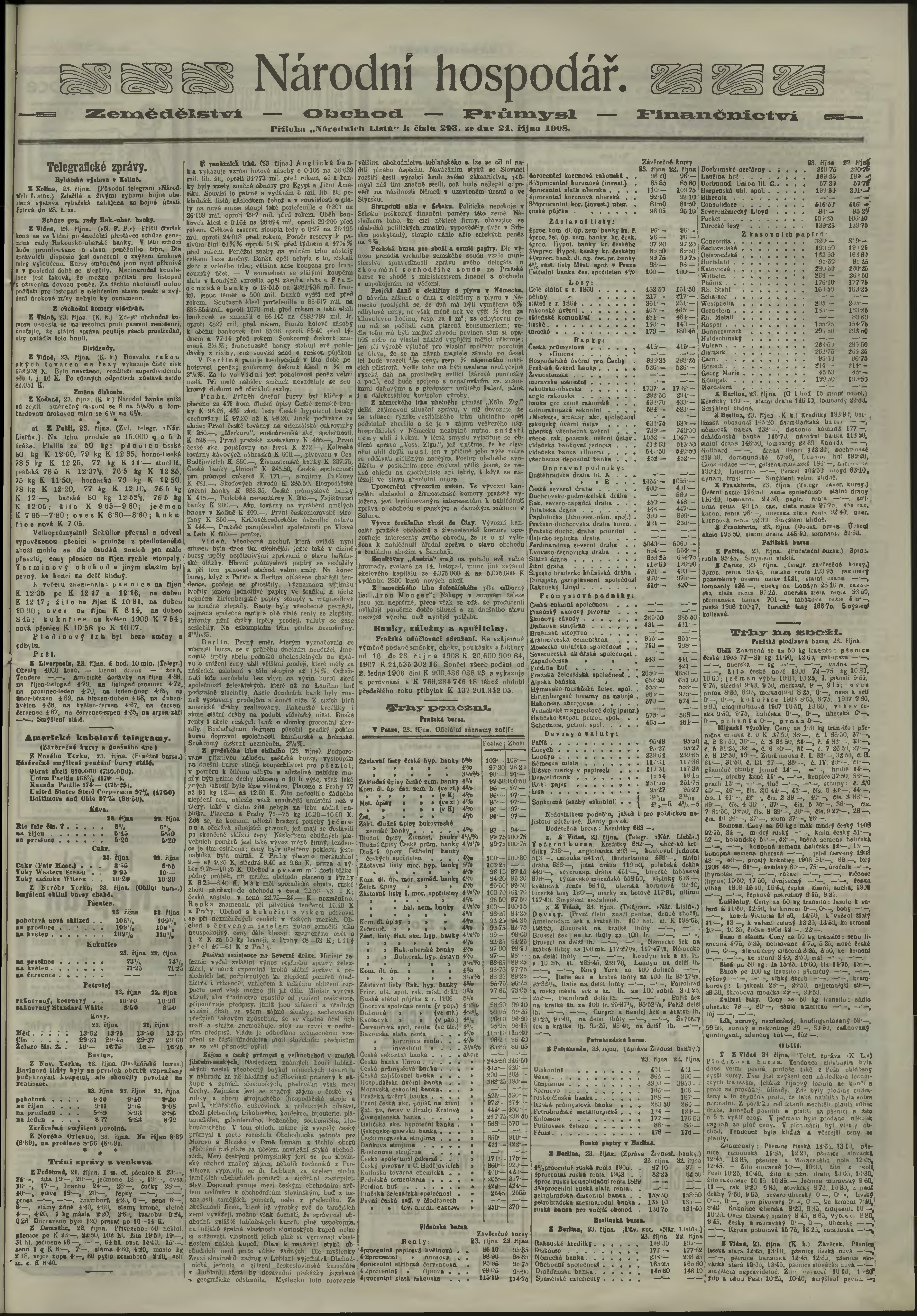 * Datum vydání výtisku: 24.10.1908 Číslo výtisku: 293 Poznámky k výtisku: ranní vydání;