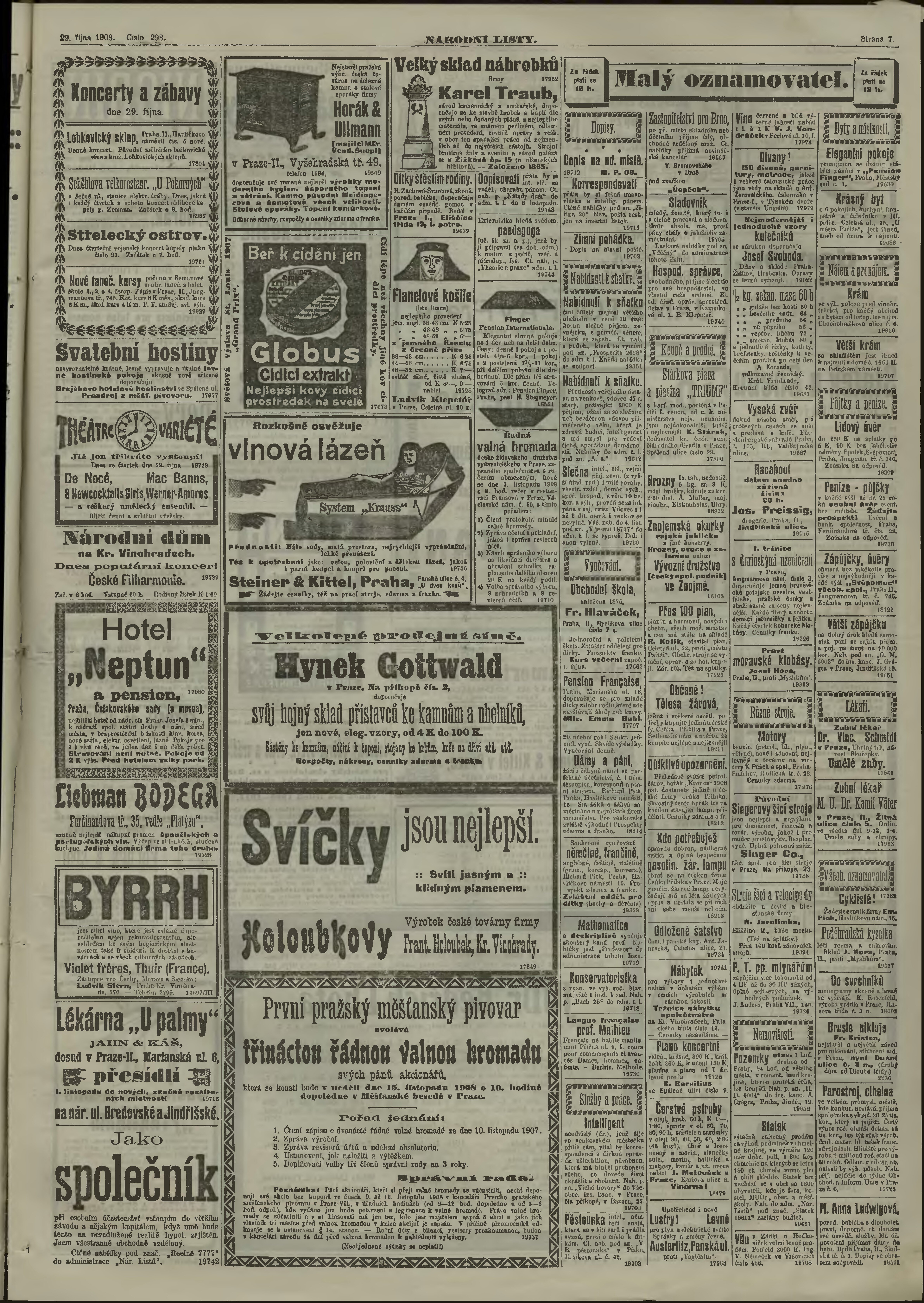 * Datum vydání výtisku: 29.10.1908 Číslo výtisku: 298 Poznámky k výtisku: ranní vydání;