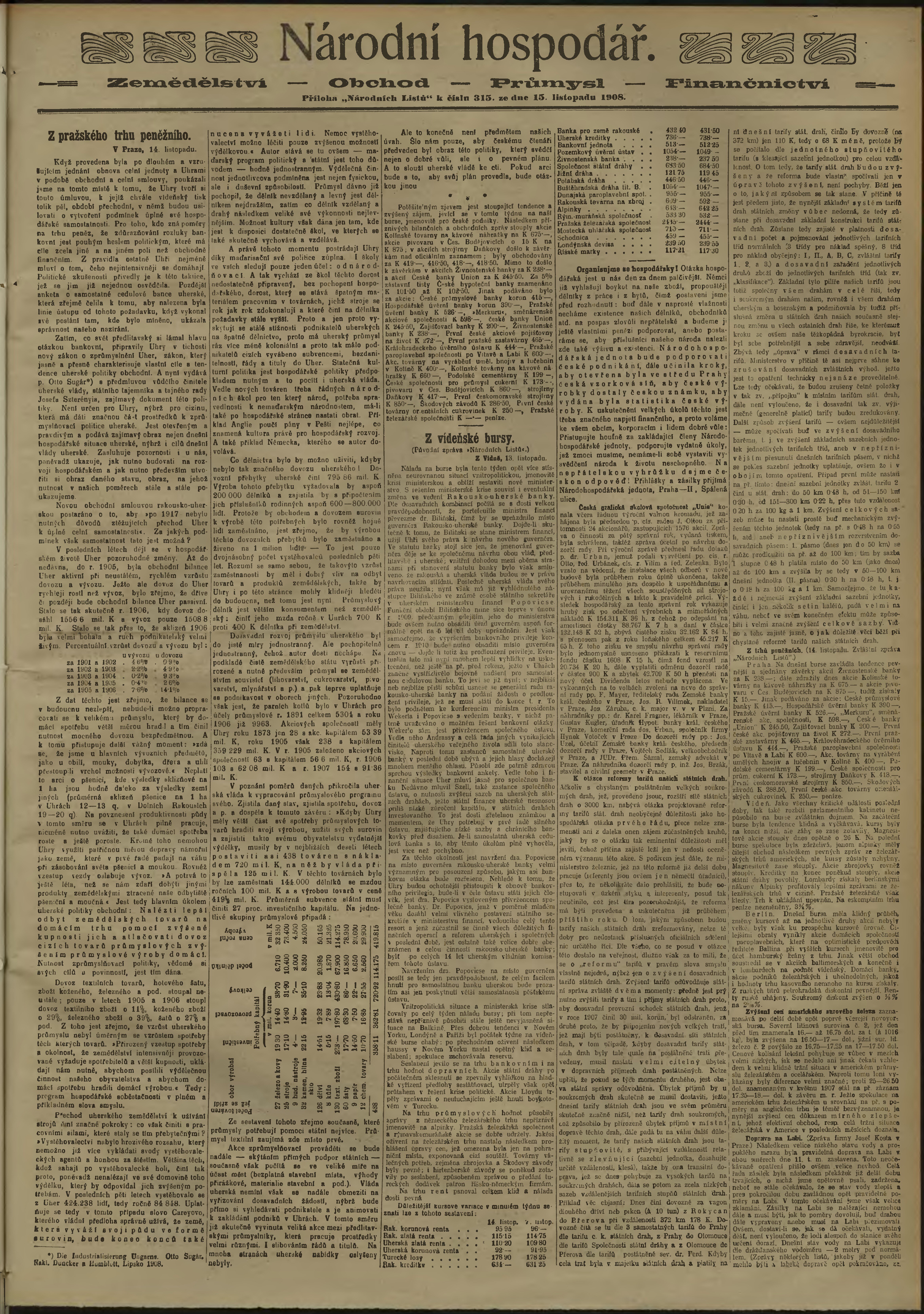 * Datum vydání výtisku: 15.11.1908 Číslo výtisku: 315 Poznámky k výtisku: ranní vydání;