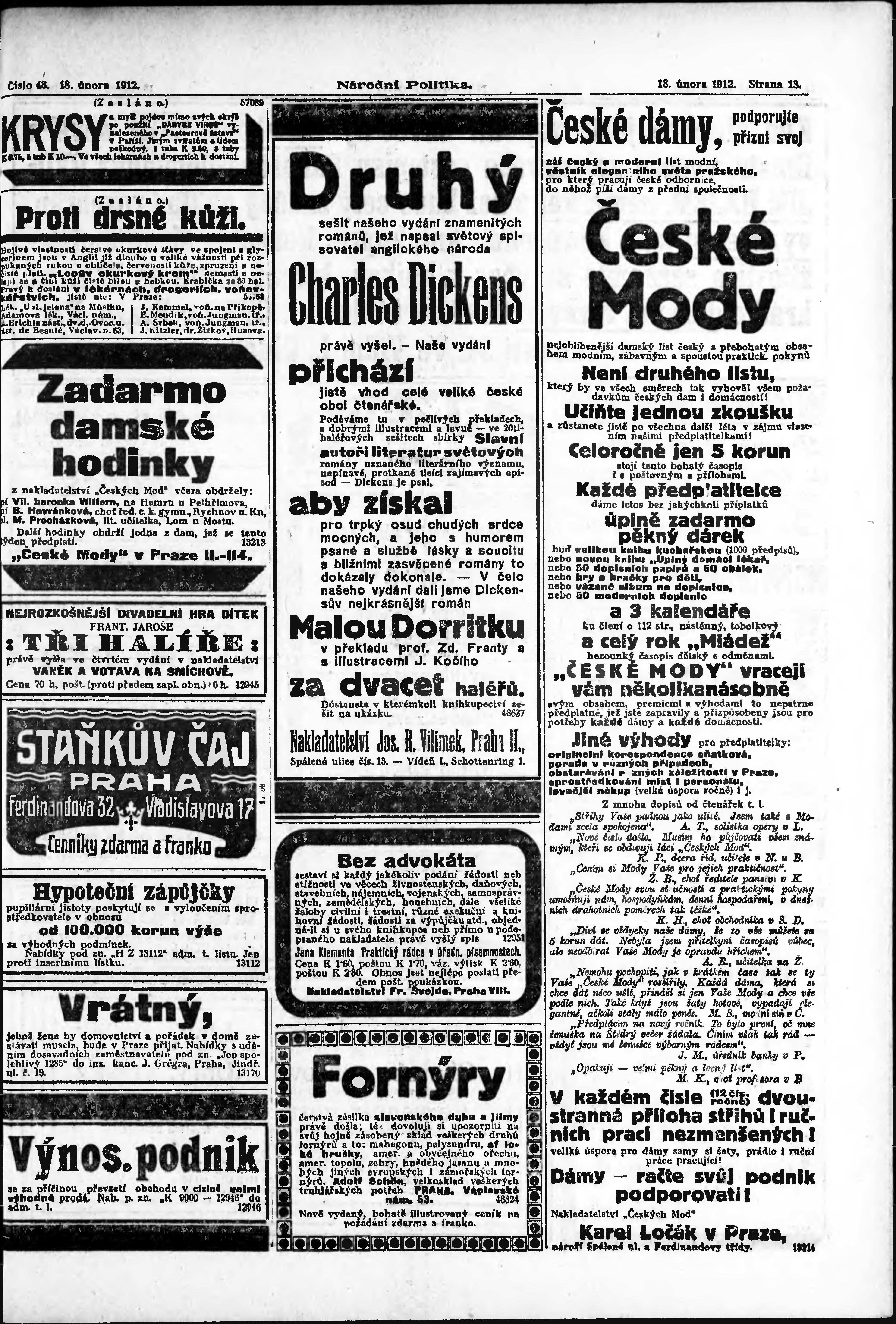 * Datum vydání výtisku: 18.2.1912 Číslo výtisku: 48 Poznámky k výtisku: ranní vydání;