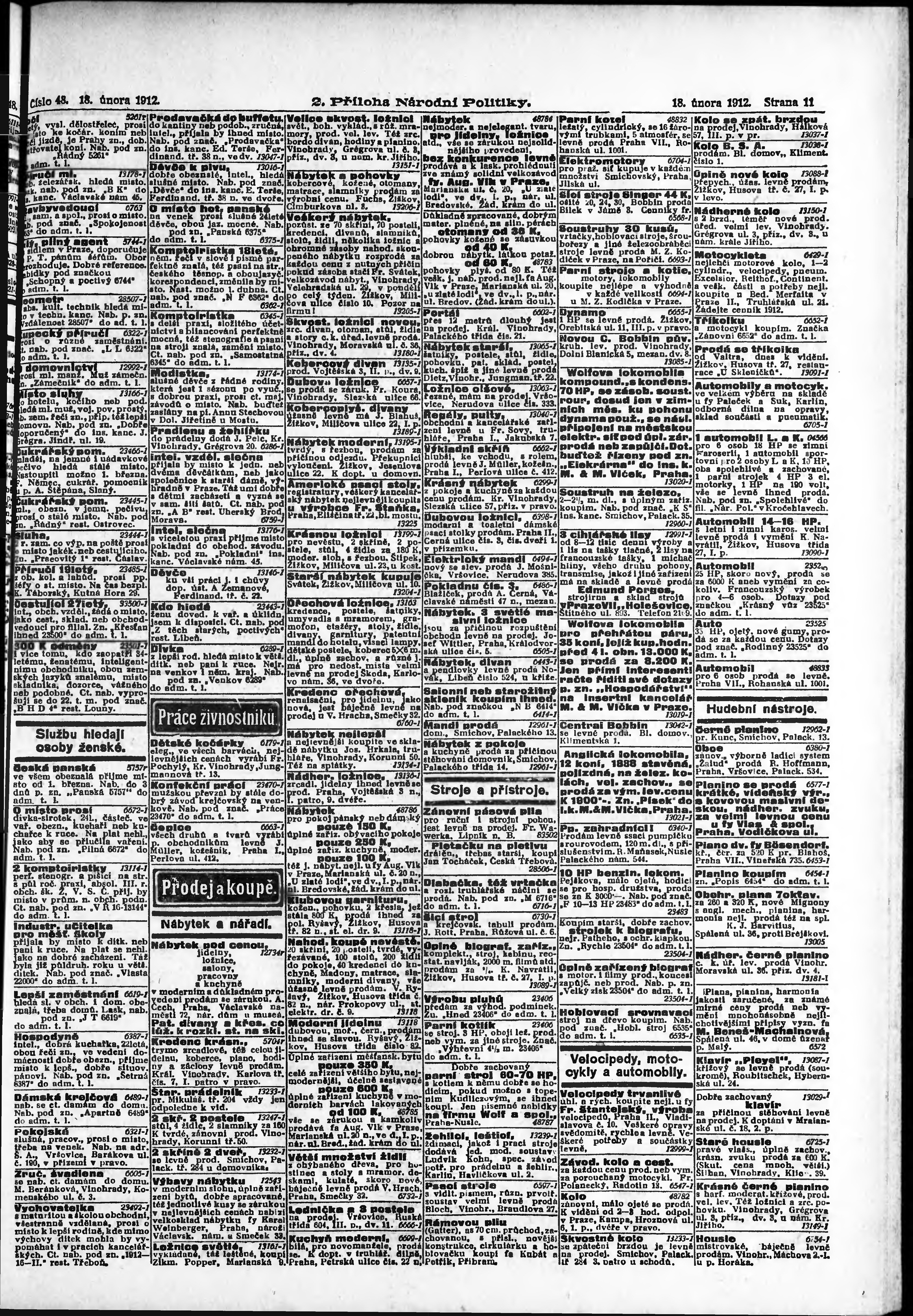 * Datum vydání výtisku: 18.2.1912 Číslo výtisku: 48 Typ výtisku: příloha Poznámky k výtisku: 2. příloha; obsahuje č. 7 Herold českoslovanského peněžnictví;