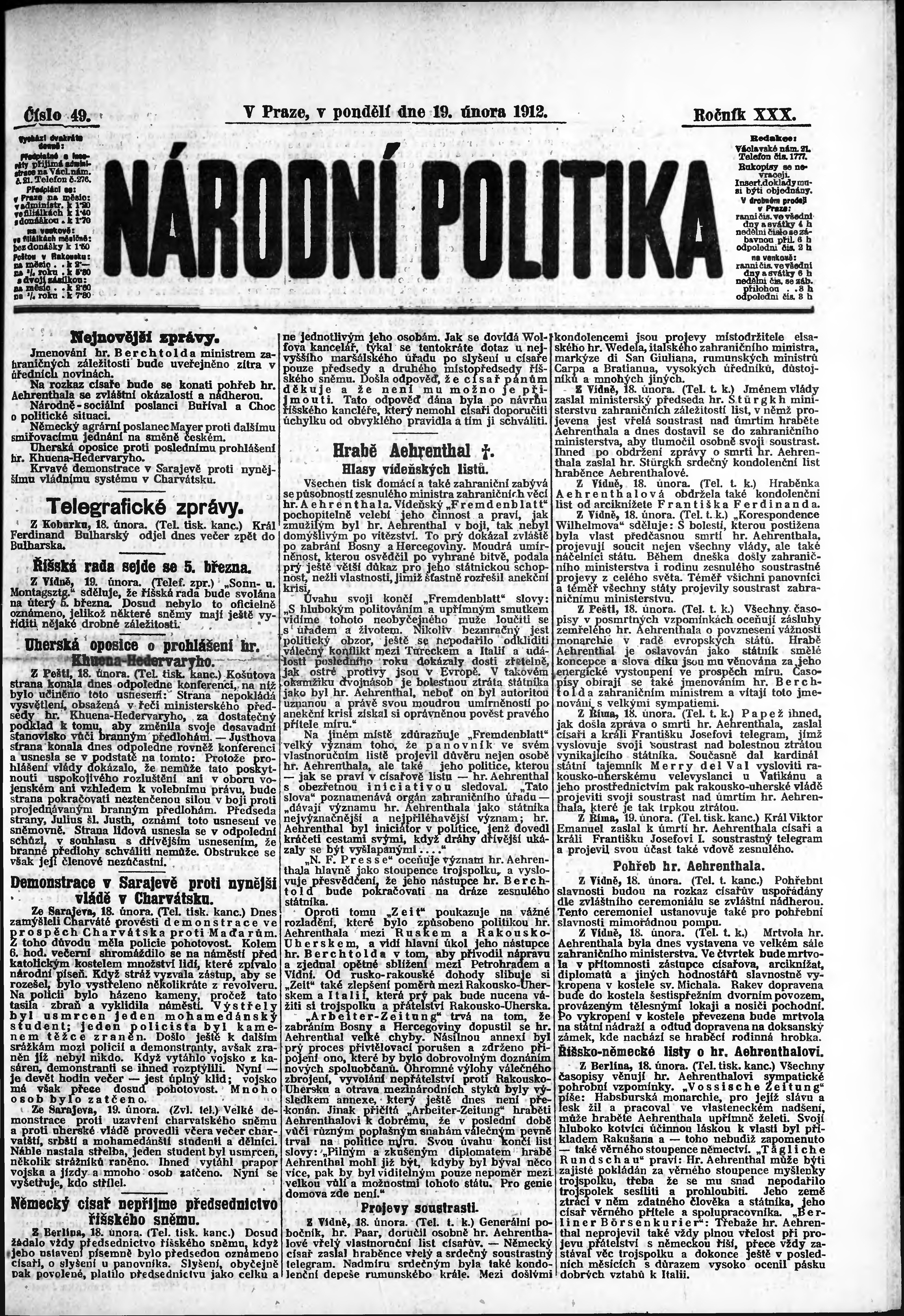 ranní vydání; s. 5 - 6 není k dispozici;