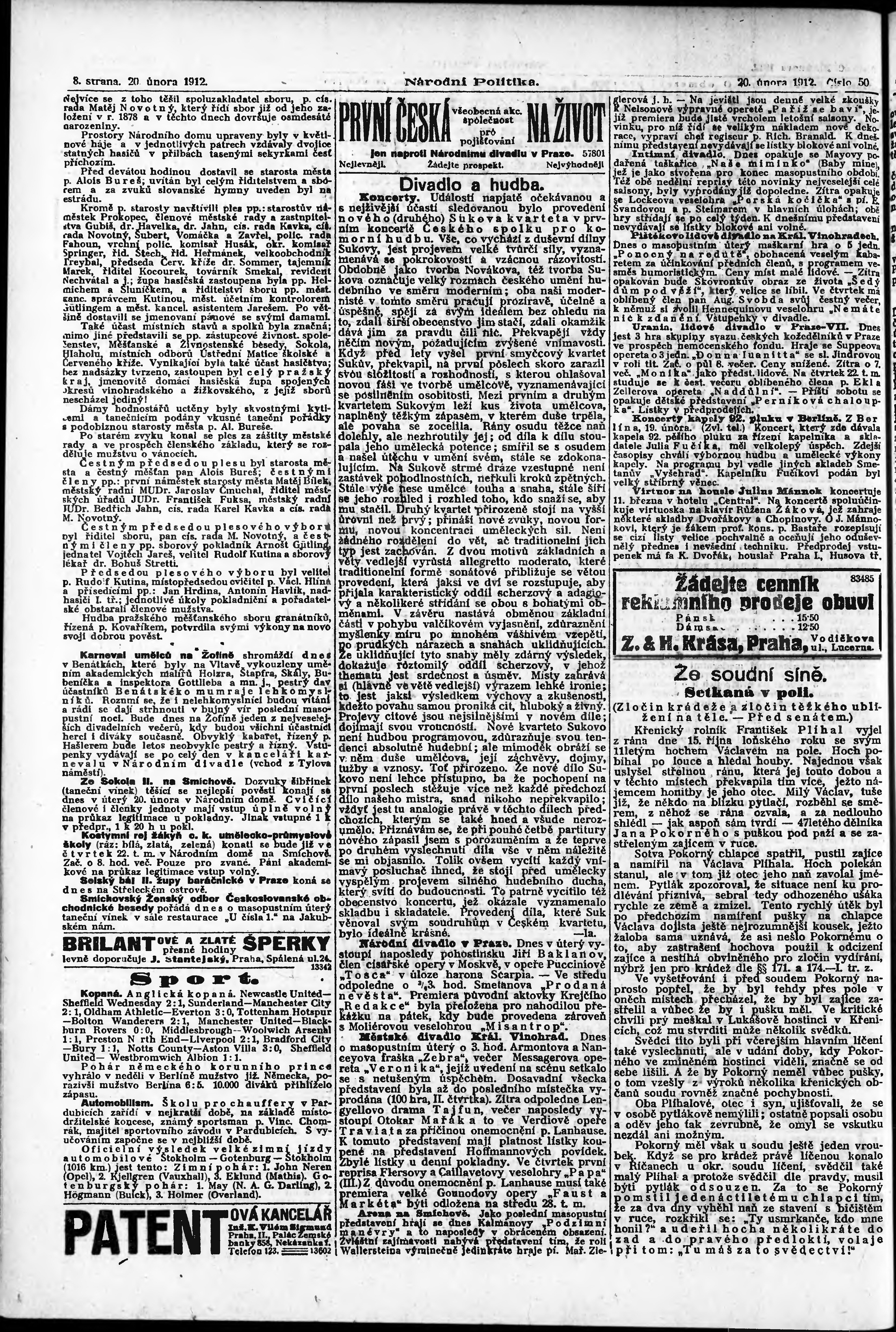 * Datum vydání výtisku: 20.2.1912 Číslo výtisku: 50 Poznámky k výtisku: ranní vydání;