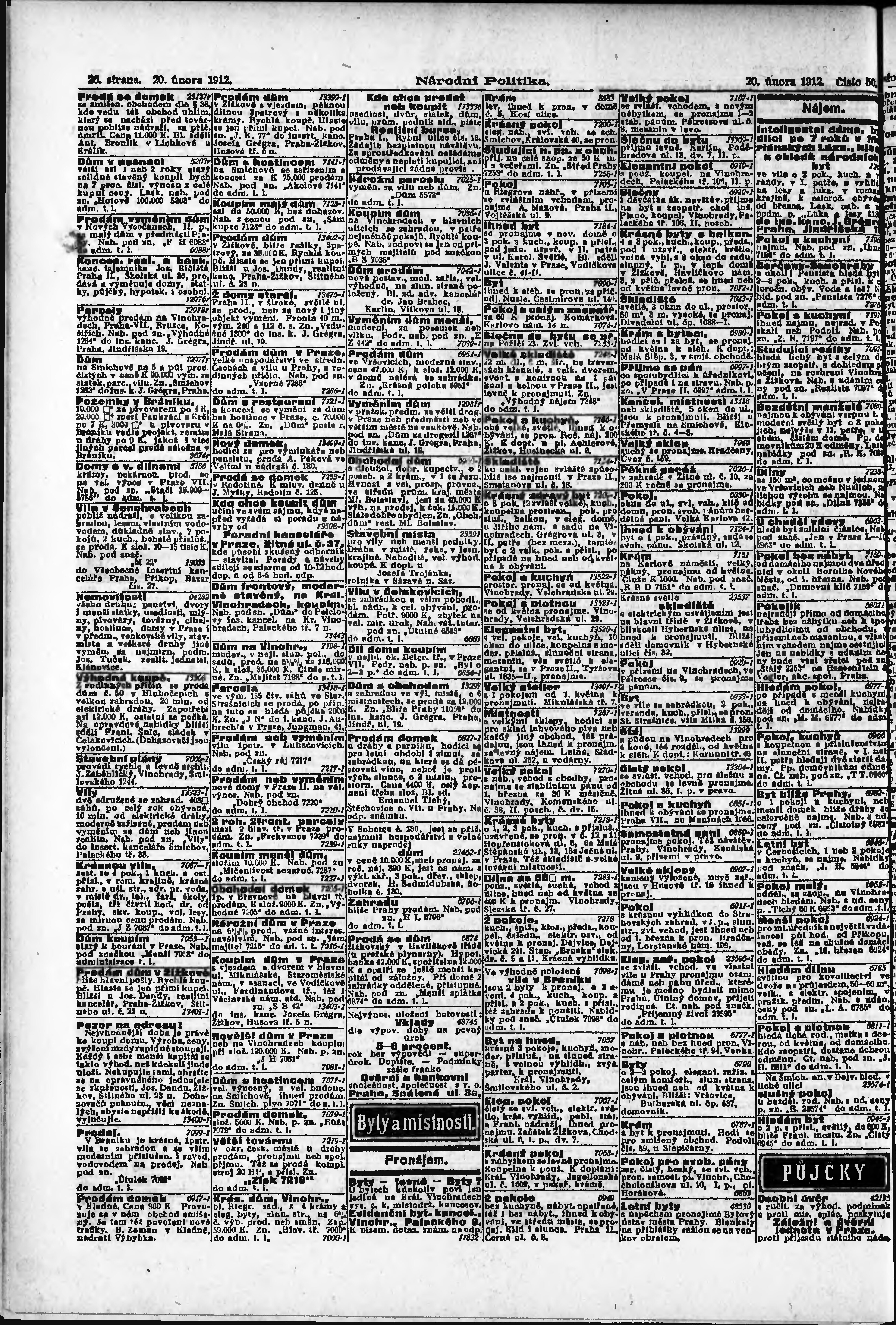 * Datum vydání výtisku: 20.2.1912 Číslo výtisku: 50 Poznámky k výtisku: ranní vydání;