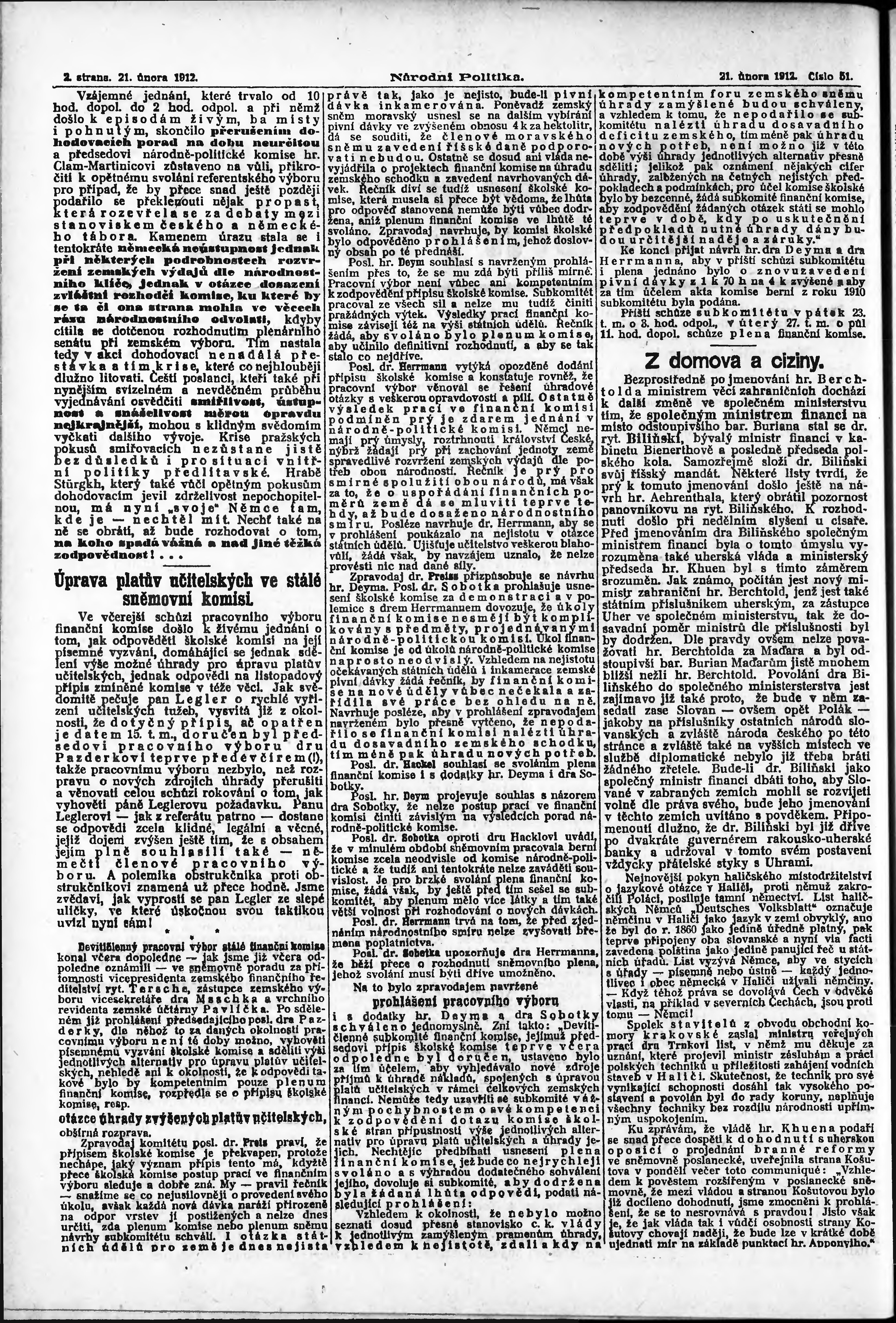 * Datum vydání výtisku: 21.2.1912 Číslo výtisku: 51 Poznámky k výtisku: ranní vydání;