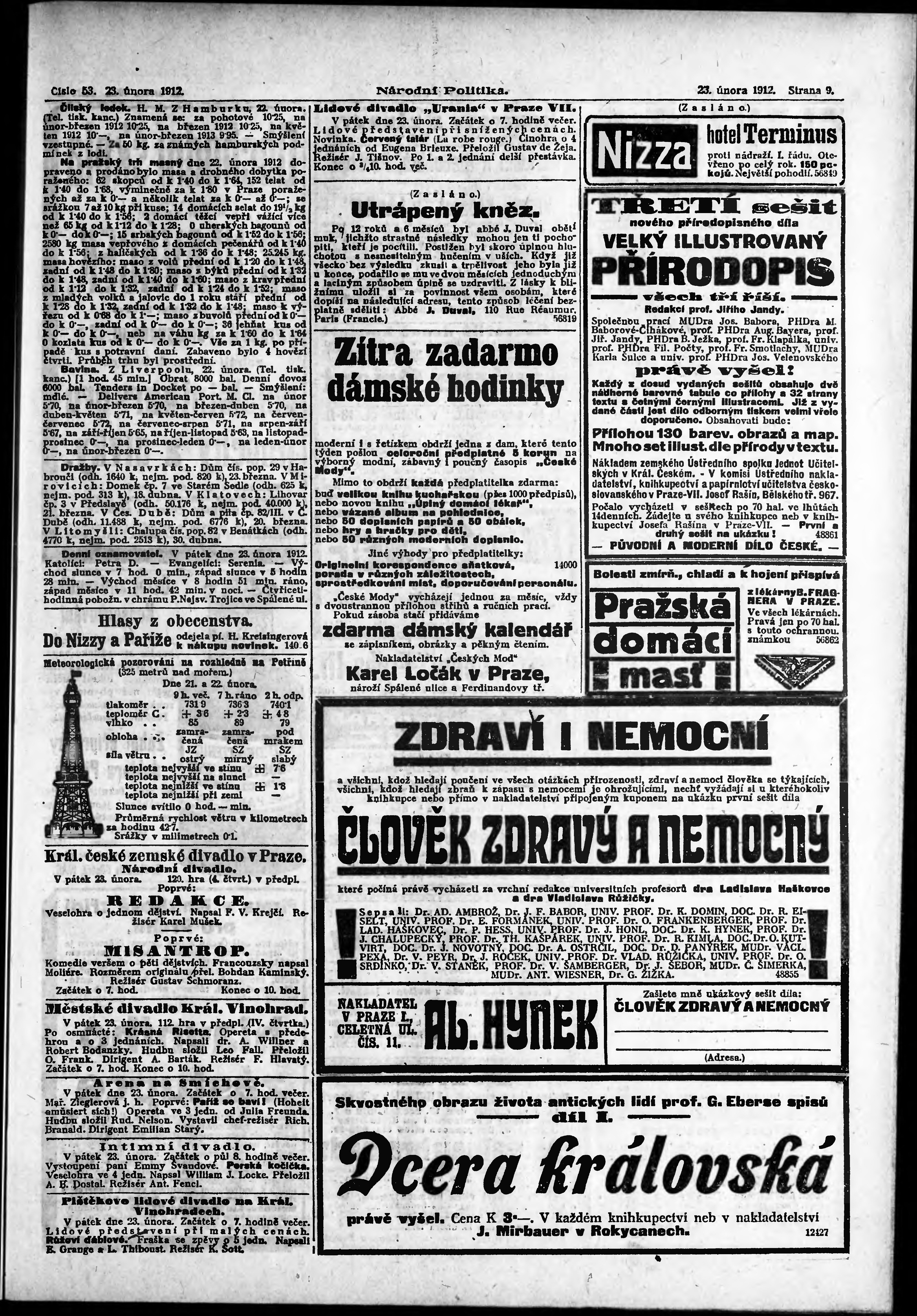 * Datum vydání výtisku: 23.2.1912 Číslo výtisku: 53 Poznámky k výtisku: ranní vydání;