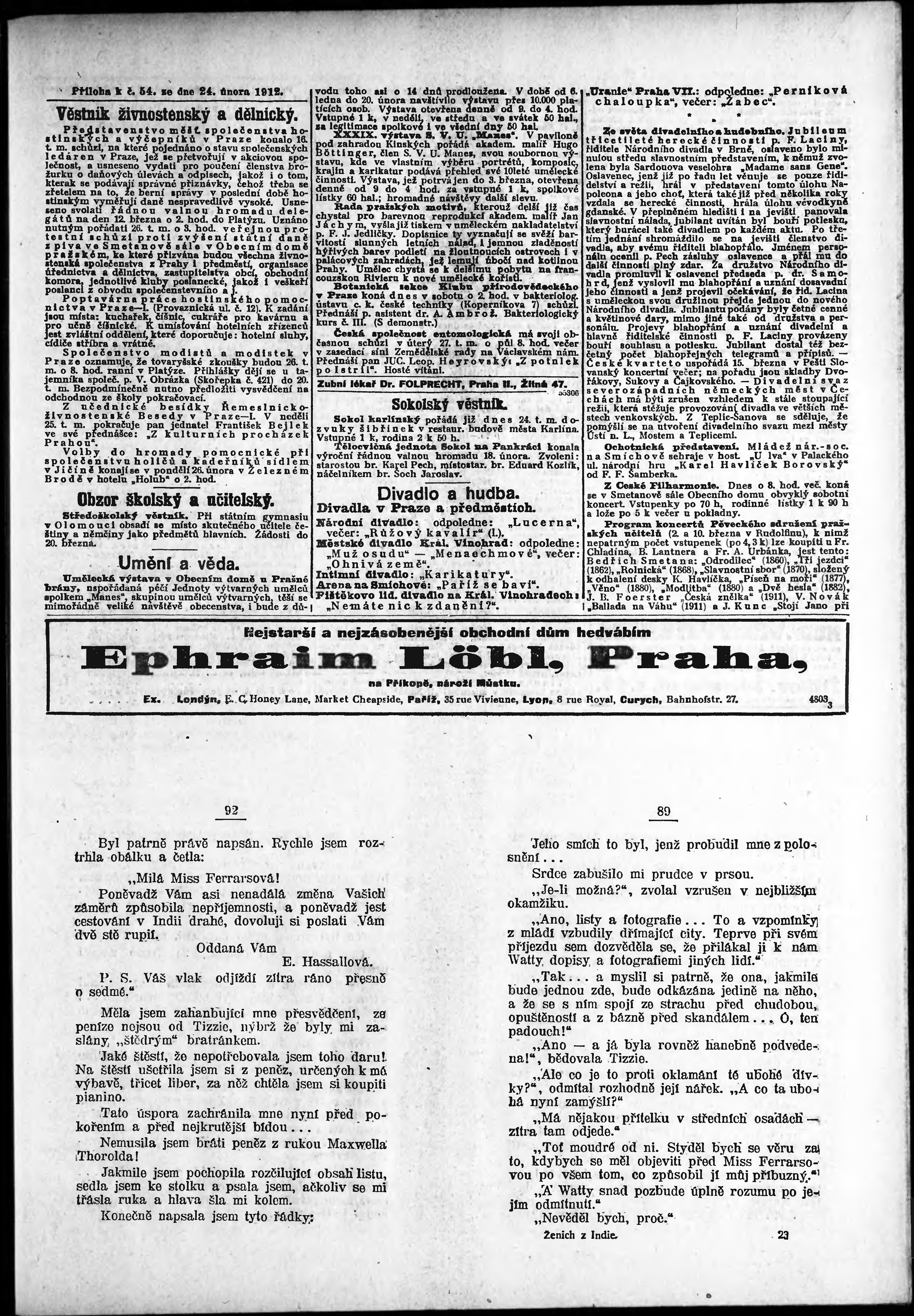 * Datum vydání výtisku: 24.2.1912 Číslo výtisku: 54 Typ výtisku: příloha