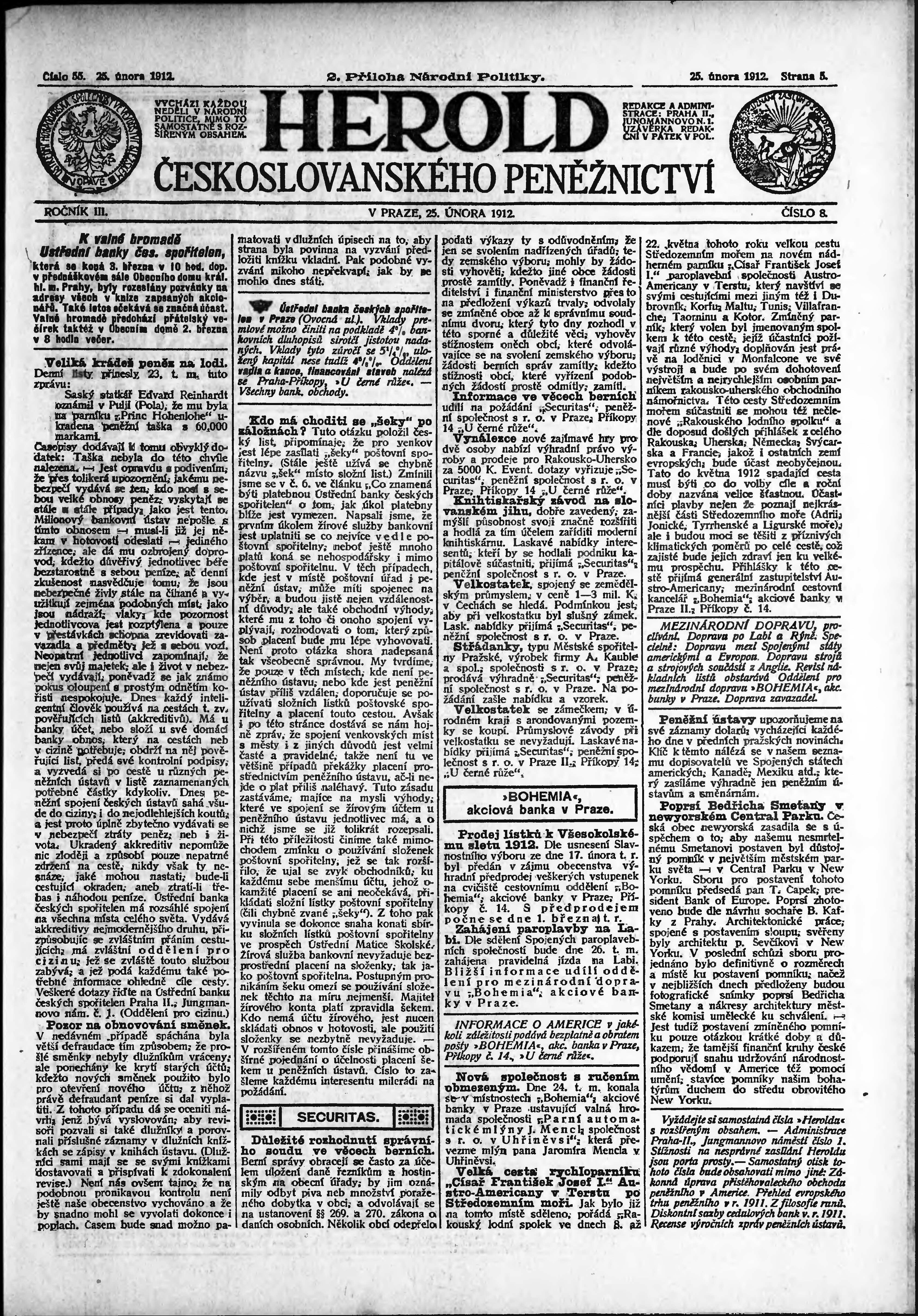 Datum vydání výtisku: 25.2.1912