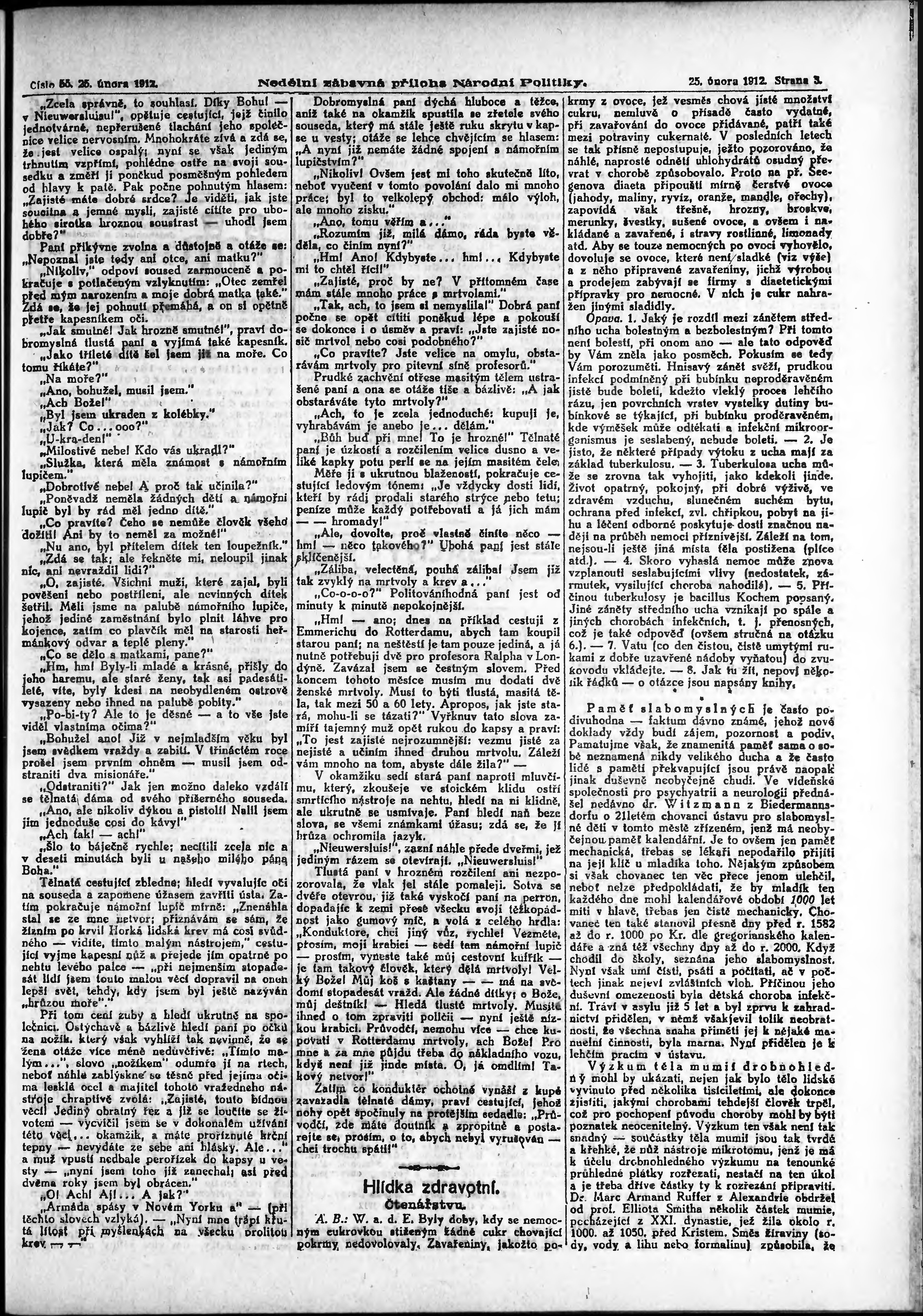 * Datum vydání výtisku: 25.2.1912 Číslo výtisku: 55 Typ výtisku: příloha