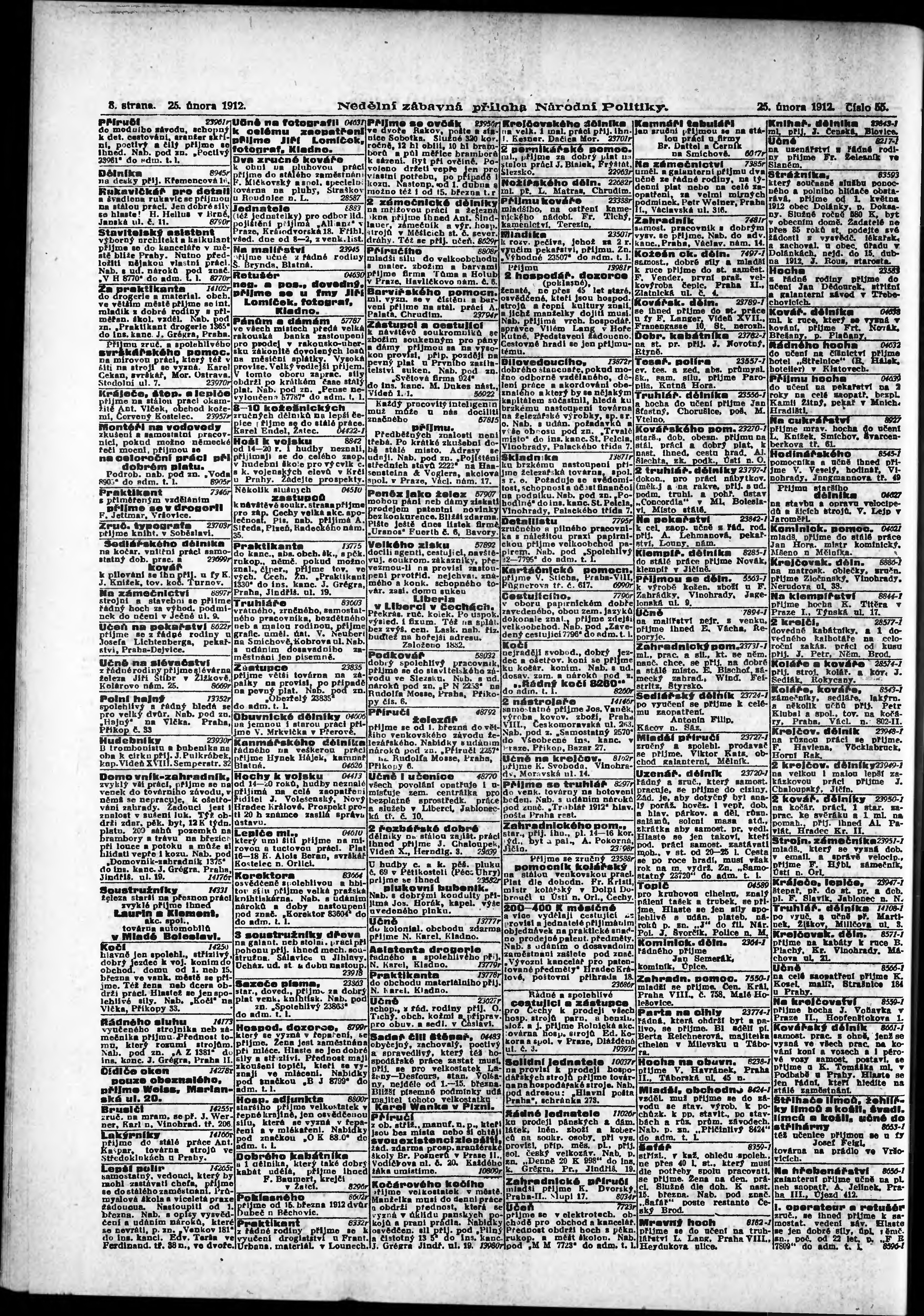 * Datum vydání výtisku: 25.2.1912 Číslo výtisku: 55 Typ výtisku: příloha