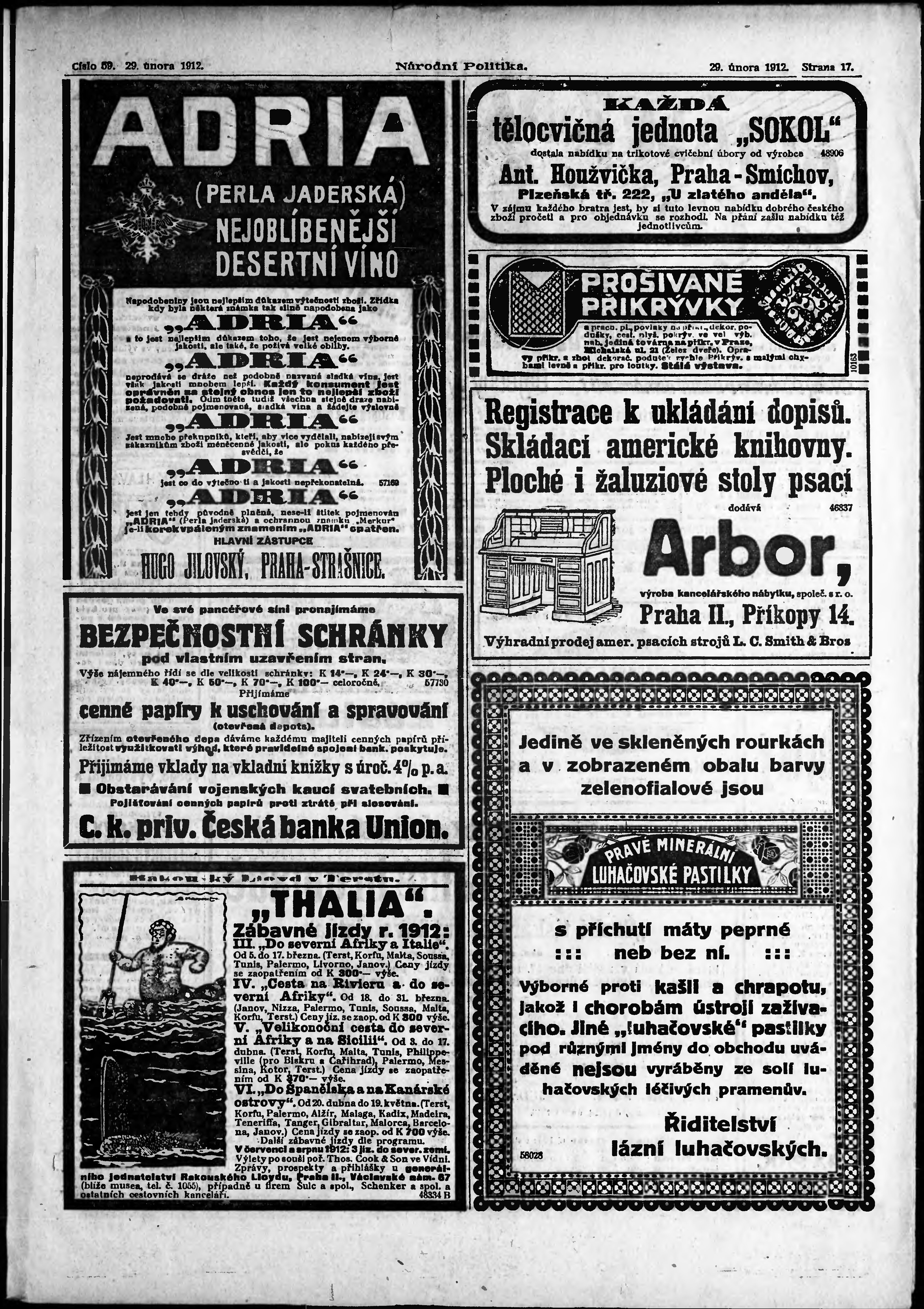 * Datum vydání výtisku: 29.2.1912 Číslo výtisku: 59 Poznámky k výtisku: ranní vydání; s. 15 - 16 není k dispozici;